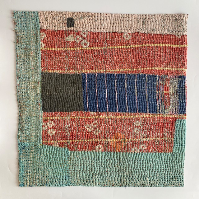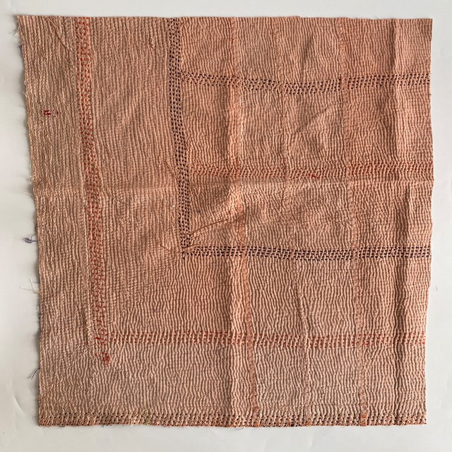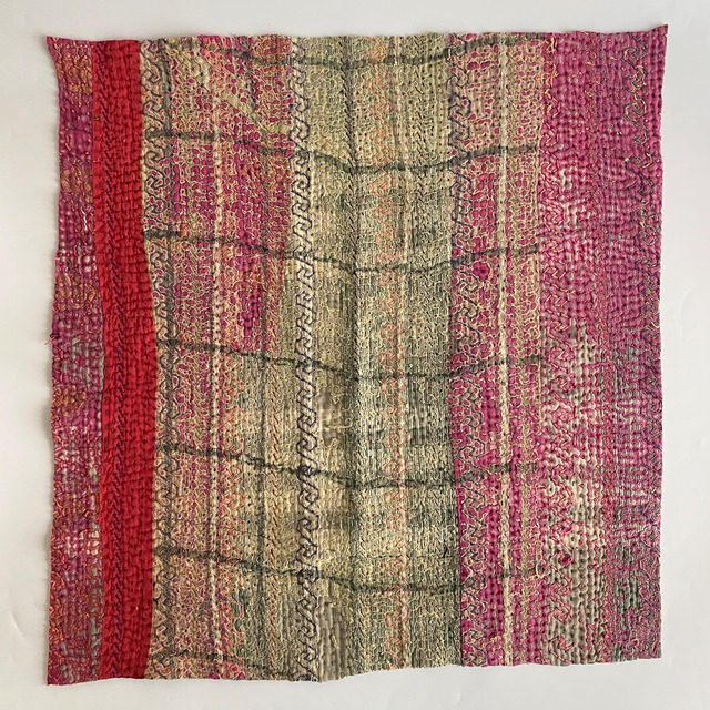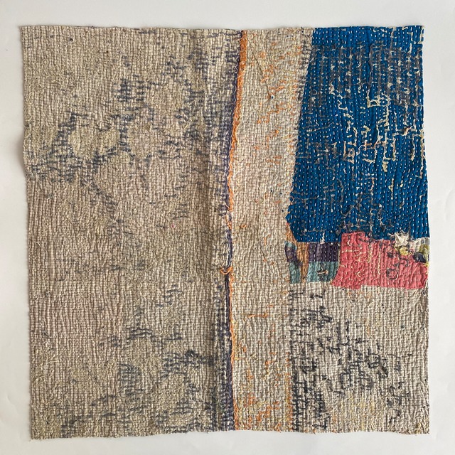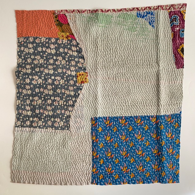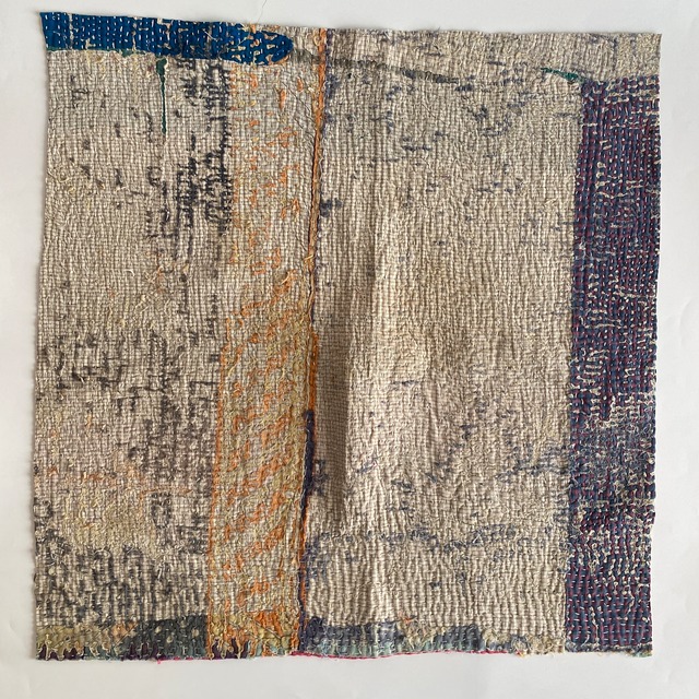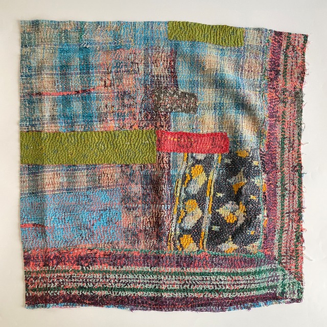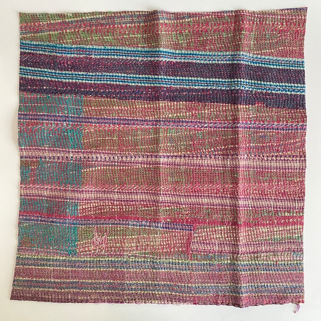 布を数枚重ねて、刺し子を施して、 スレて破れて、下の布地が出てきて、 思いもよらない、色とりどりのグラデーションになるのが魅力の一つ。 ヴィンテージファブリックの魅力をご理解頂けたら幸いです。 【サイズ】 約 縦50✕横50cm 場所により増減します。およその目安です。ご了承下さいませ。 【厚み】 布を5〜8枚ほど重ねたような厚さです。 部分的に、布が薄くなっているところ、ツギハギで、布が厚くなっているところもございます。 細かいステッチに、 全体的に柔らかく、スレや破れで出来たグラデーションが魅力です。 飾ったり、ハンドメイド資材などに! 【お願い】 ★古い布で作られているので、汚れ、シミ、糸のほつれ、色あせ、小さな破れ、等がございます。 ラリーキルト・カンタキルトは、長い間、人の手で破れたら直して、継ぎ接ぎして、長く永く愛用してきた布です。 ヴィンテージファブリックにご理解の上、お買い求め下さいませ。 ★また、撮影の光の加減や、お使いのモニター環境によっても、実際の色と違って見える場合がございます。 ご了承をお願い致します。 ★インドより、直輸入後、クリーニングしております。 #ラリーキルト #カンタキルト #オールドラリーキルト #ヴィンテージファブリック #ヴィンテージラリーキルト #ヴィンテージカンタキルト