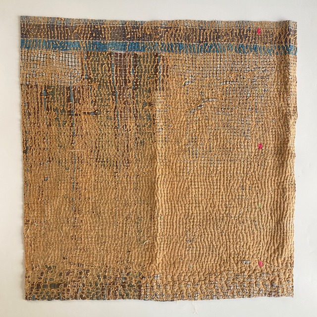 布を数枚重ねて、刺し子を施して、 スレて破れて、下の布地が出てきて、 思いもよらない、色とりどりのグラデーションになるのが魅力の一つ。 ヴィンテージファブリックの魅力をご理解頂けたら幸いです。 【サイズ】 約 縦50✕横50cm 場所により増減します。およその目安です。ご了承下さいませ。 【厚み】 布を6〜9枚ほど重ねたような厚さです。 部分的に、布が薄くなっているところ、ツギハギで、布が厚くなっているところもございます。 細かいステッチに、 全体的に柔らかく、スレや破れで出来たグラデーションが魅力です。 飾ったり、ハンドメイド資材などに! 【お願い】 ★古い布で作られているので、汚れ、シミ、糸のほつれ、色あせ、小さな破れ、等がございます。 ラリーキルト・カンタキルトは、長い間、人の手で破れたら直して、継ぎ接ぎして、長く永く愛用してきた布です。 ヴィンテージファブリックにご理解の上、お買い求め下さいませ。 ★また、撮影の光の加減や、お使いのモニター環境によっても、実際の色と違って見える場合がございます。 ご了承をお願い致します。 ★インドより、直輸入後、クリーニングしております。 #ラリーキルト #カンタキルト #オールドラリーキルト #ヴィンテージファブリック #ヴィンテージラリーキルト #ヴィンテージカンタキルト