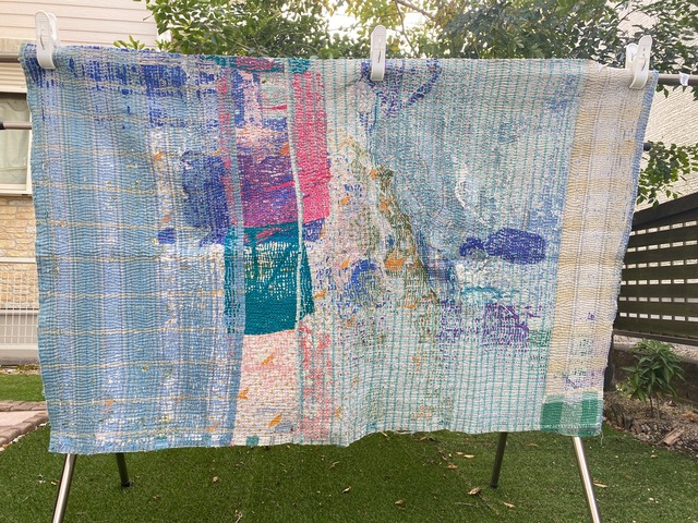 ★布を数枚重ねて、刺し子を施して、 スレて破れて、下の布地が出てきて、 思いもよらない、色とりどりのグラデーションになるのが魅力の一つ。 ヴィンテージファブリックの魅力をご理解頂けたら幸いです。 【サイズ】 約140✕80cm 場所により増減します。およその目安です。ご了承下さいませ。 【厚み】 布を3〜5枚ほど重ねたような厚さです。 部分的に、布が薄くなっているところ、 ツギハギで、布が厚くなっているところもございます。 スレて破れてグラデーションが魅力です。 ソファーカバーやタペストリー、ハンドメイド資材などにも! 【お願い】 ★古い布で作られているので、汚れ、シミ、糸のほつれ、色あせ、小さな破れ、等がございます。 ラリーキルト・カンタキルトは、長い間、人の手で破れたら直して、継ぎ接ぎして、長く永く愛用してきた布です。 ヴィンテージファブリックにご理解の上、お買い求め下さいませ。 ★また、撮影の光の加減や、お使いのモニター環境によっても、実際の色と違って見える場合がございます。 ご了承をお願い致します。 ★インドより、直輸入後、クリーニングしております。 #ラリーキルト #カンタキルト #オールドラリーキルト #ヴィンテージファブリック #ヴィンテージラリーキルト #ヴィンテージカンタキルト