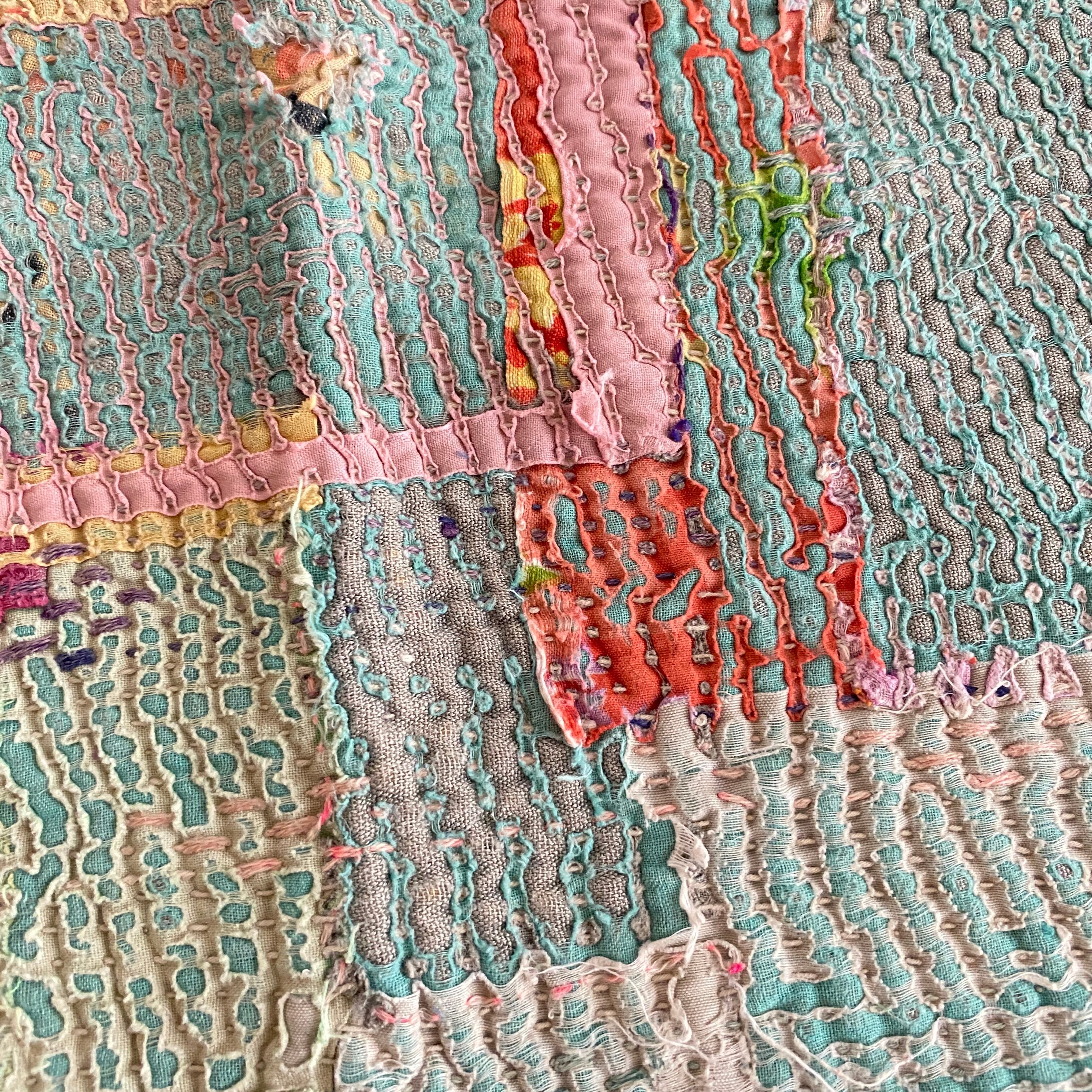 布を数枚重ねて、刺し子を施して、