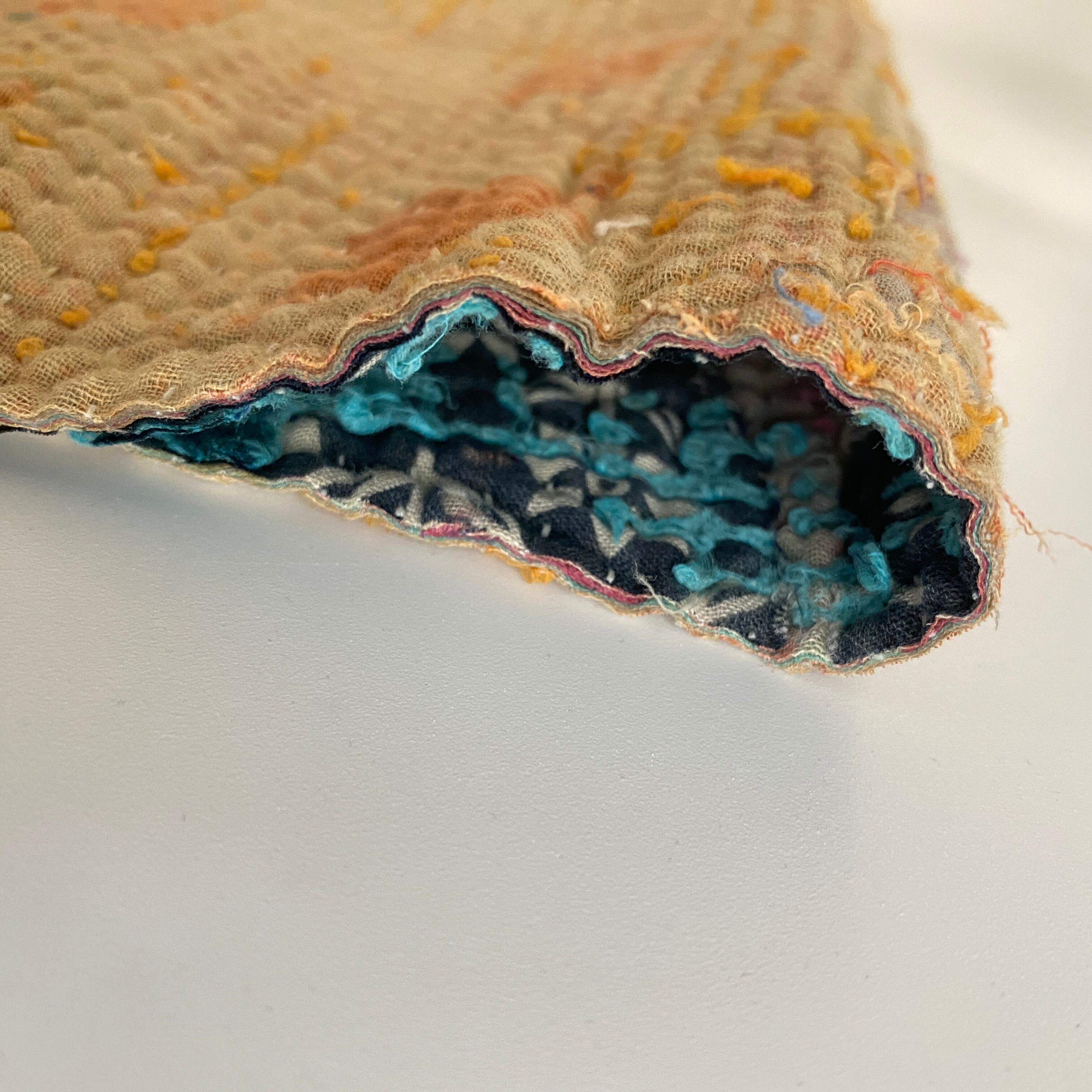 布を数枚重ねて、刺し子を施して、