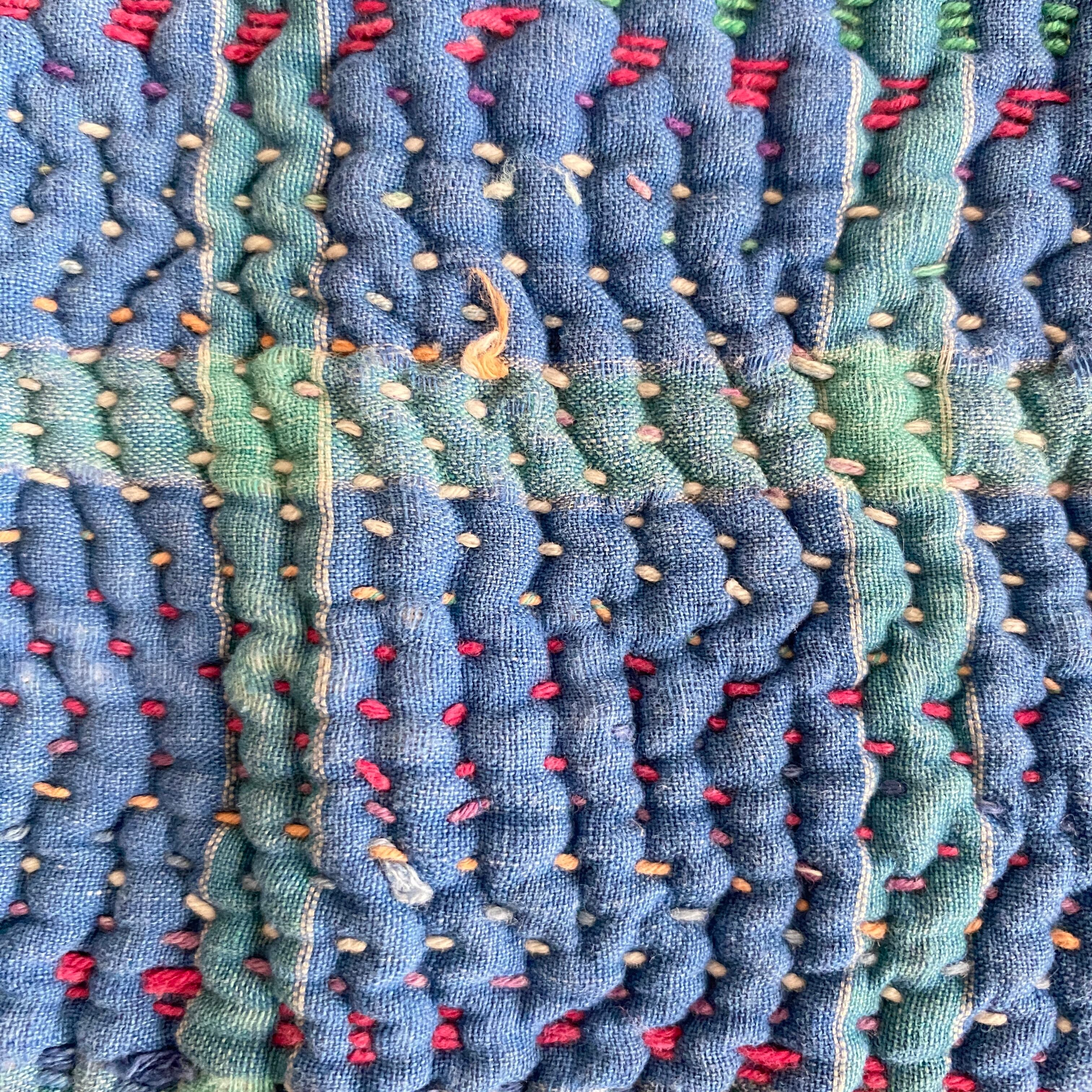布を数枚重ねて、刺し子を施して、