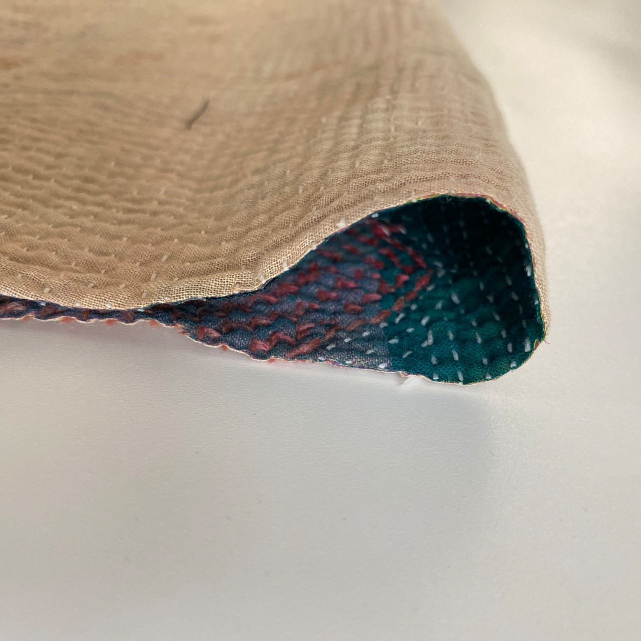 布を数枚重ねて、刺し子を施して、