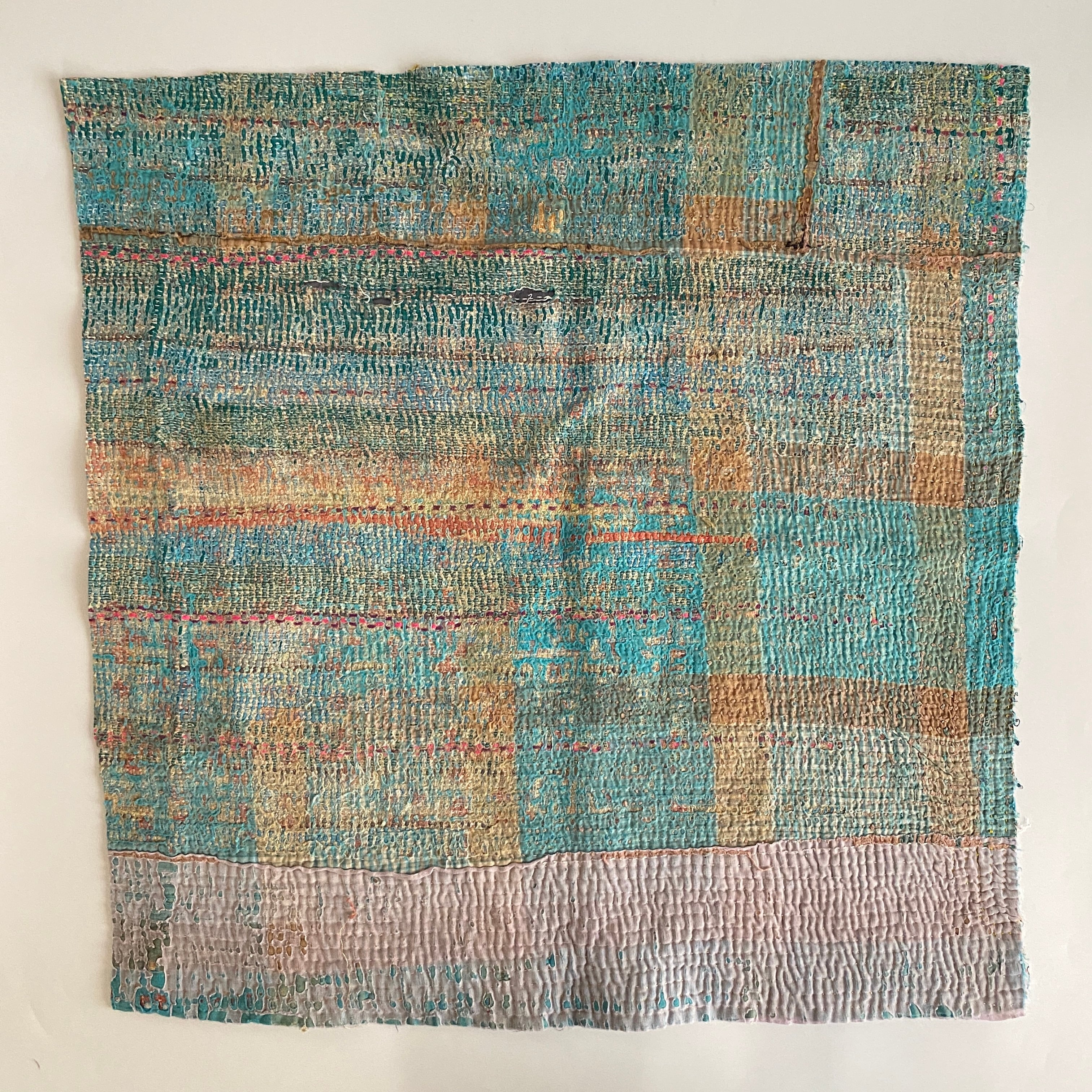 布を数枚重ねて、刺し子を施して、