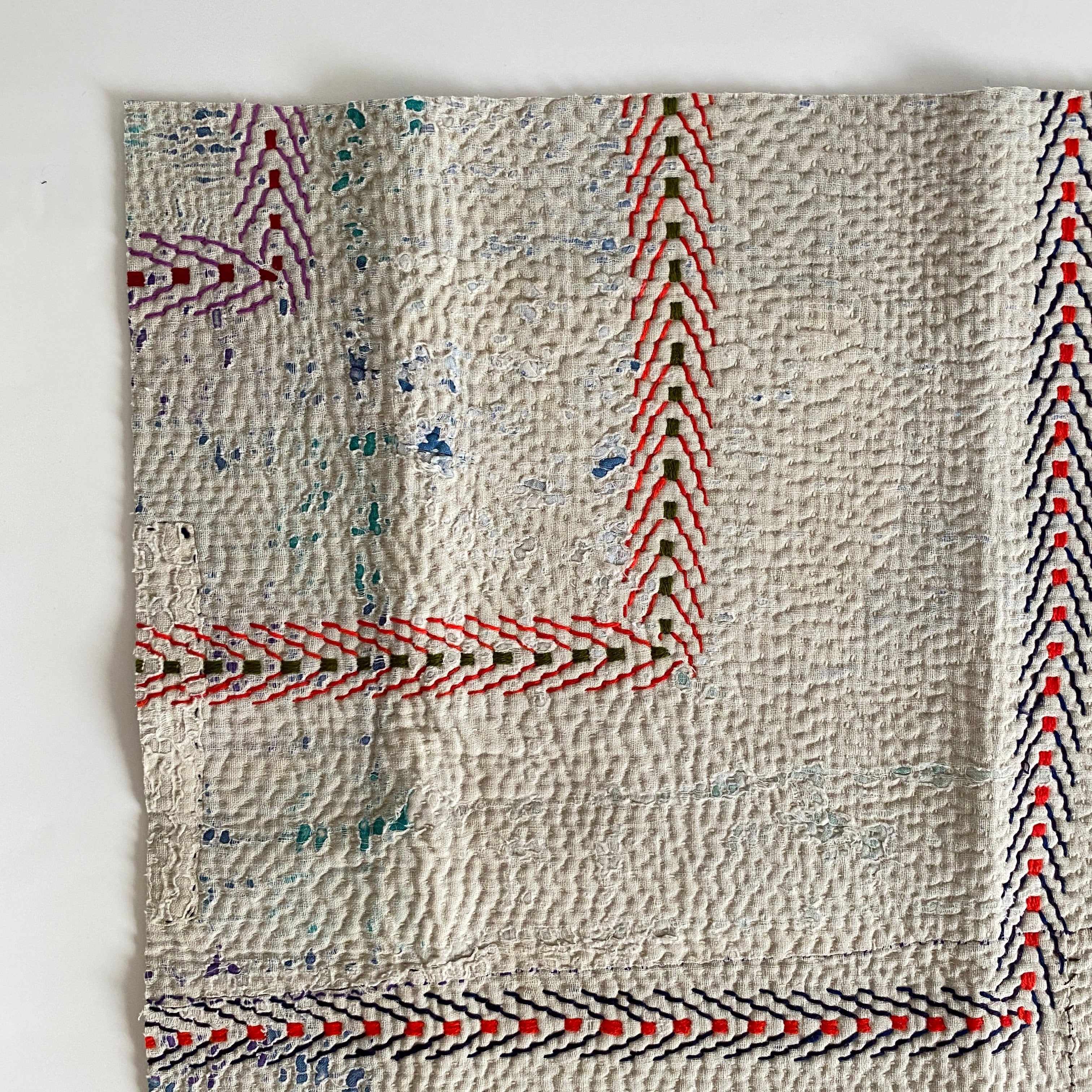 布を数枚重ねて、刺し子を施して、