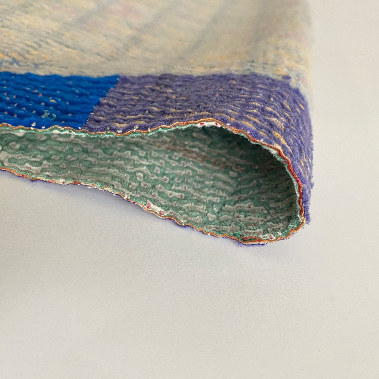布を数枚重ねて、刺し子を施して、