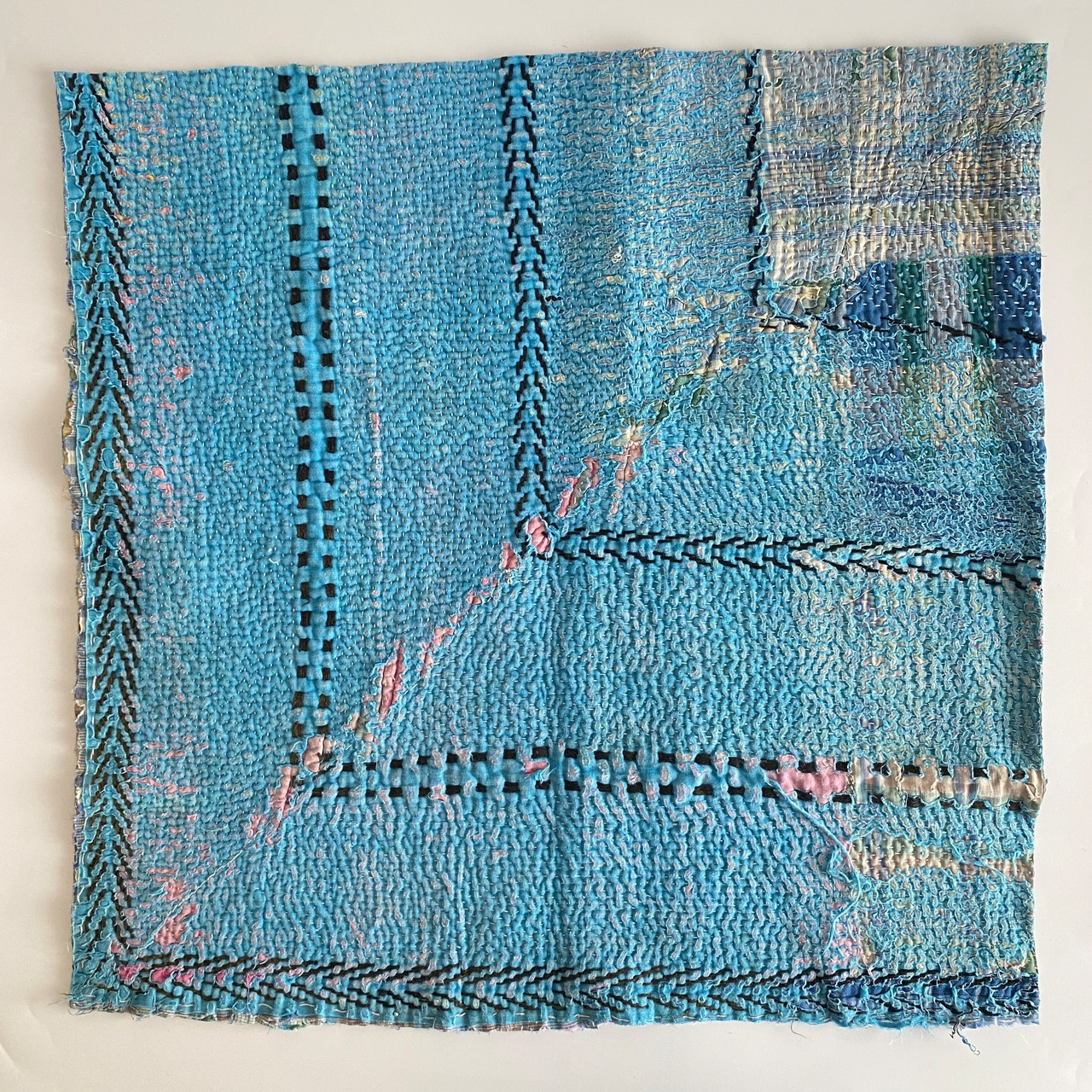 布を数枚重ねて、刺し子を施して、