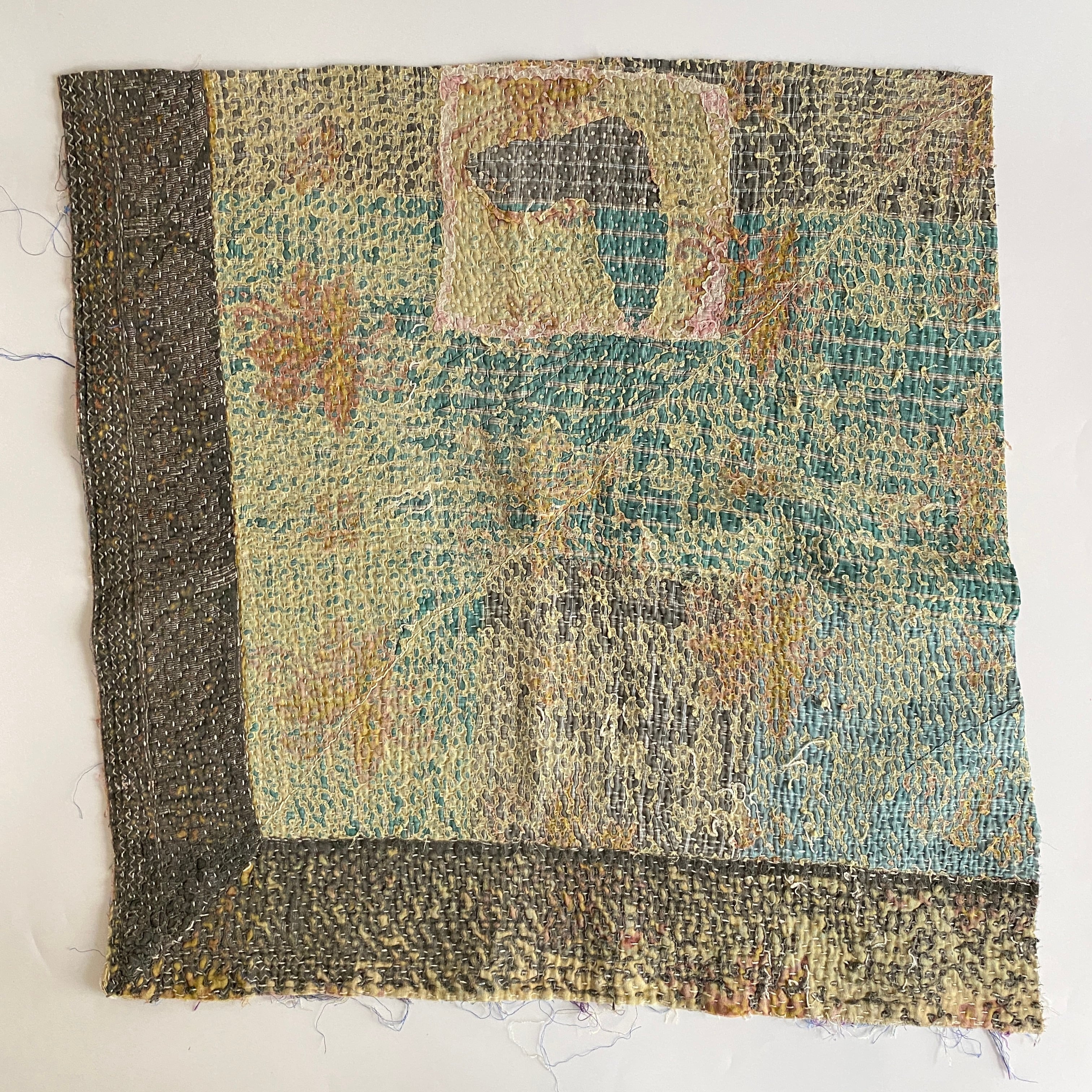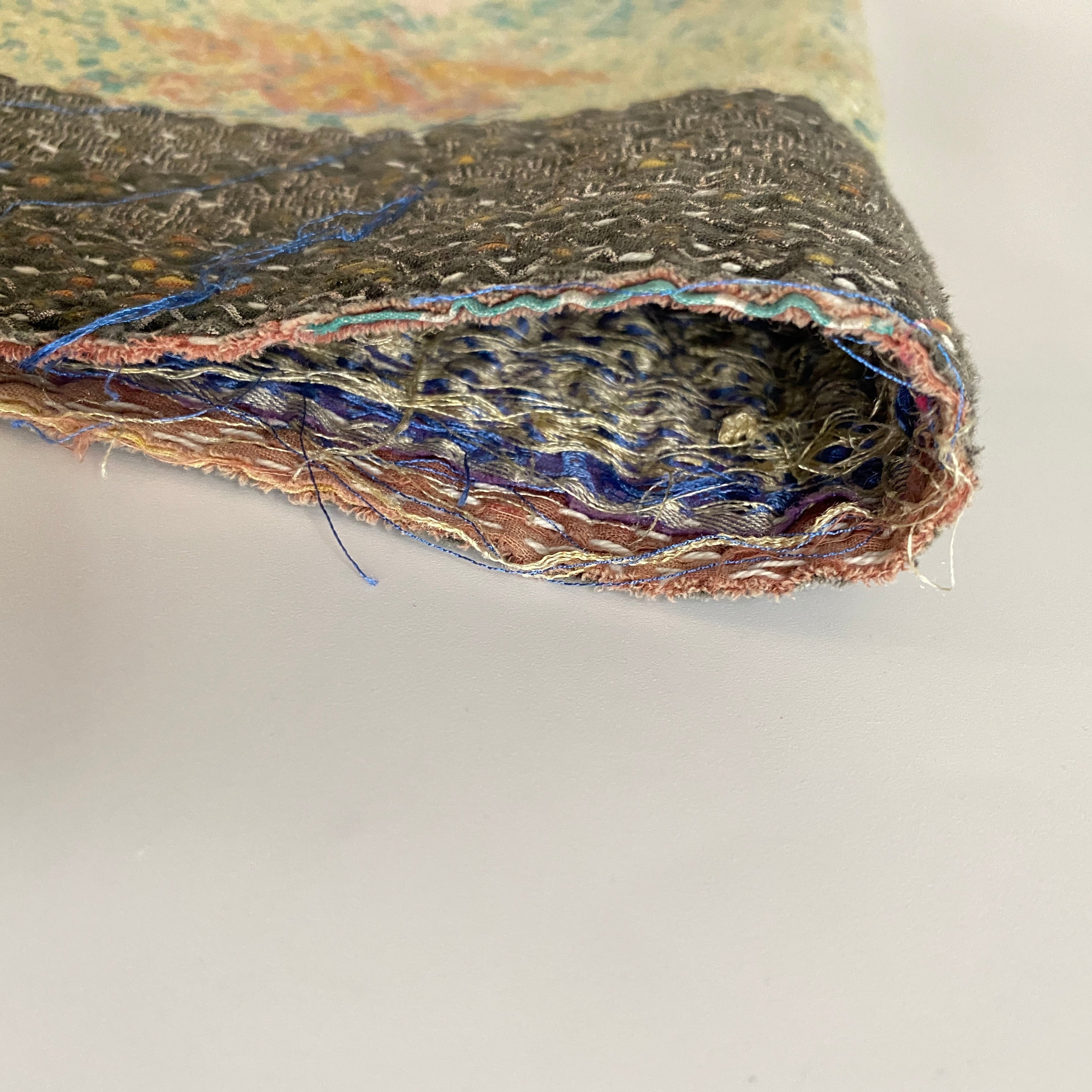 布を数枚重ねて、刺し子を施して、