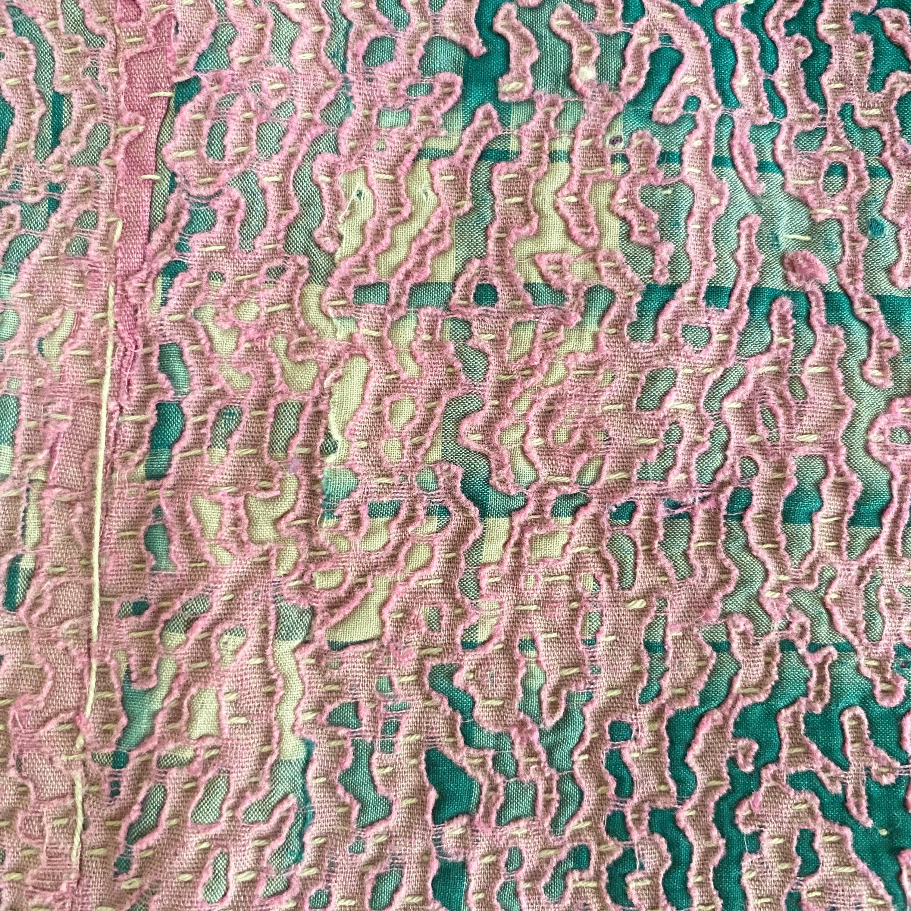 布を数枚重ねて、刺し子を施して、