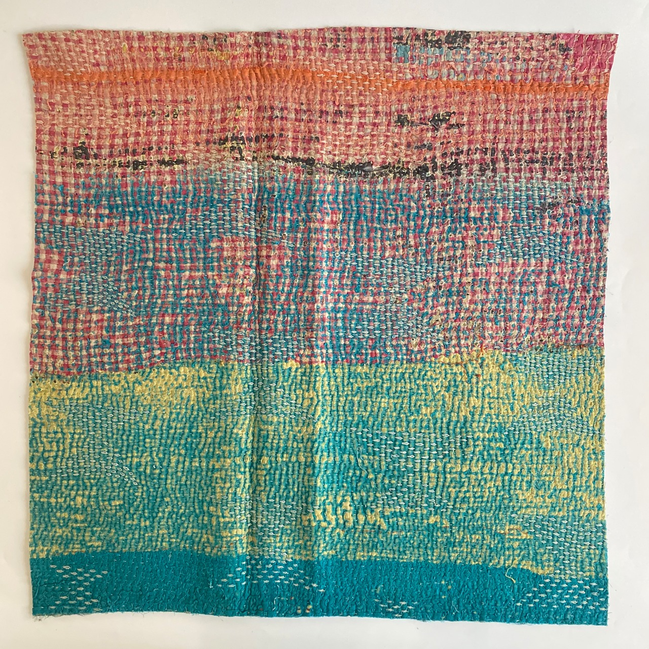 布を数枚重ねて、刺し子を施して、