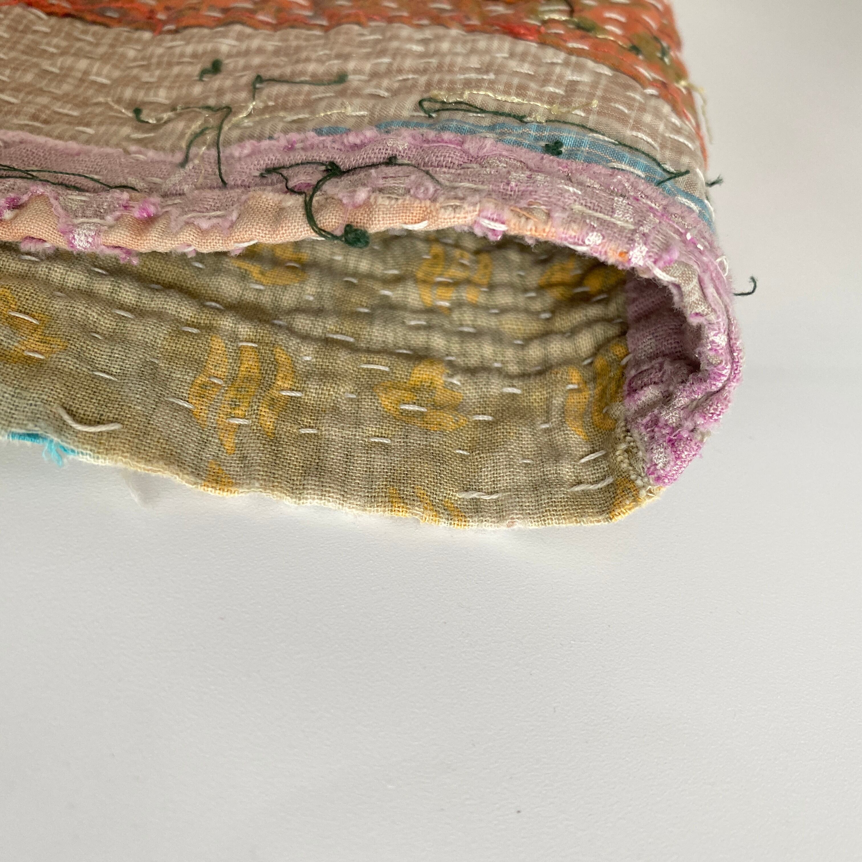 布を数枚重ねて、刺し子を施して、