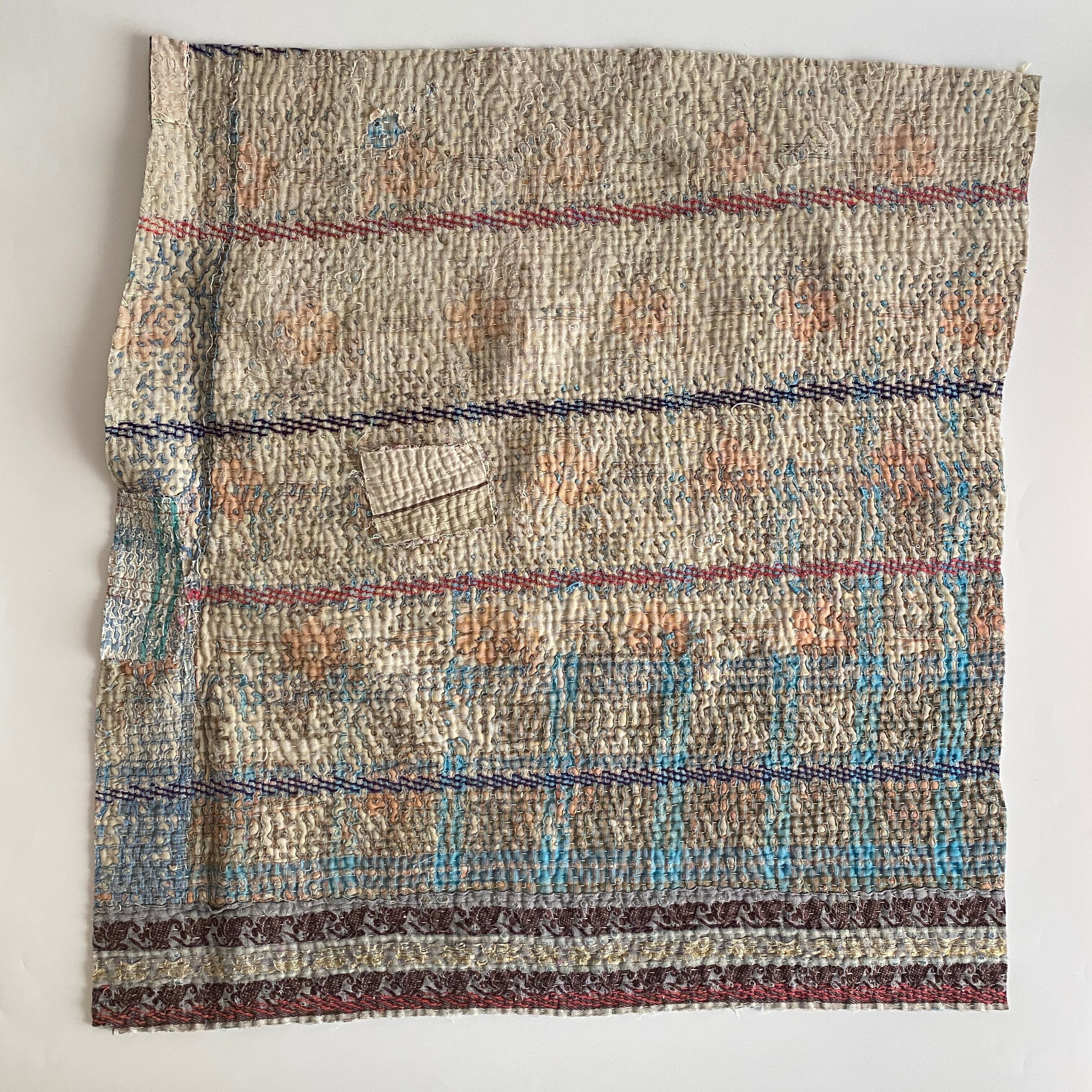 布を数枚重ねて、刺し子を施して、