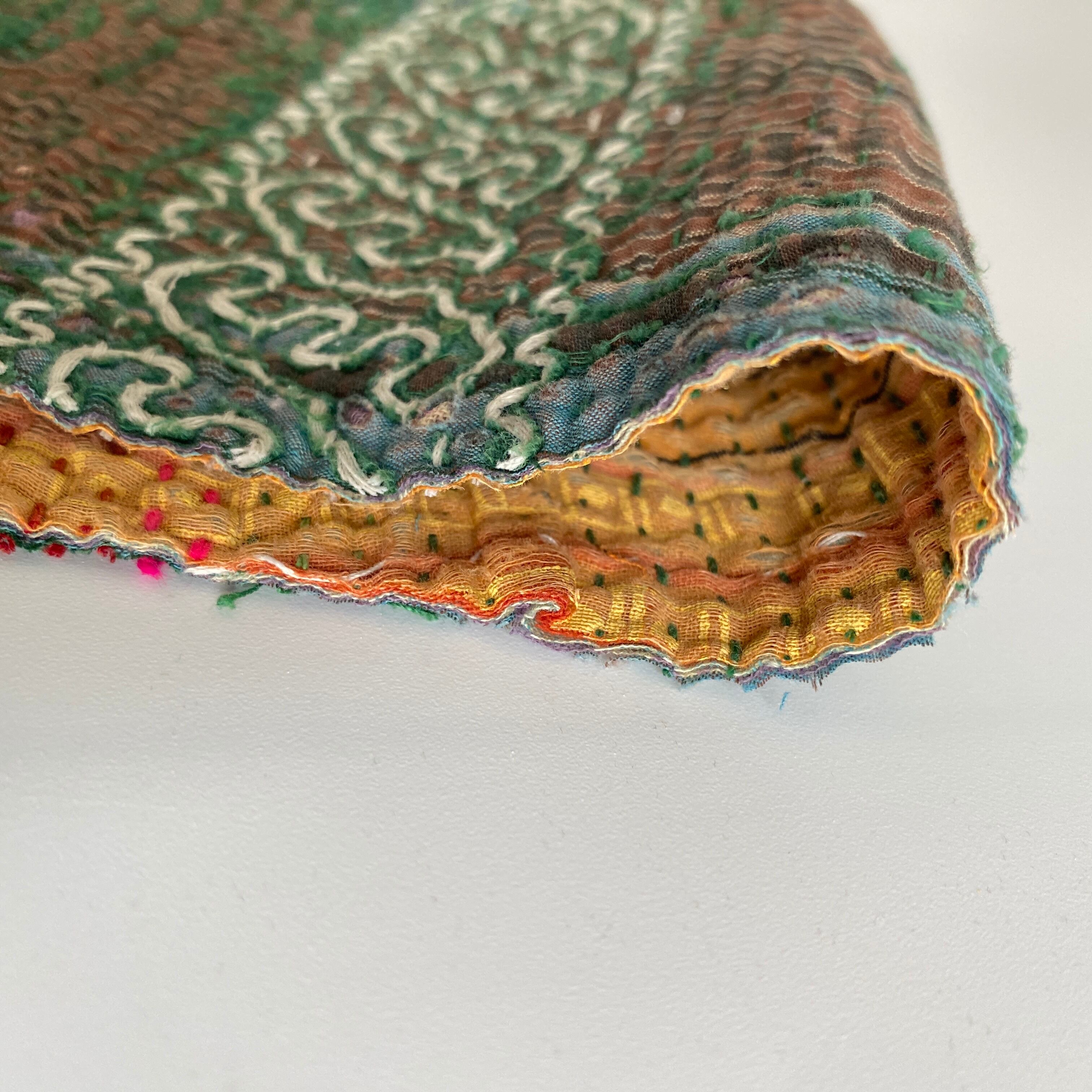 布を数枚重ねて、刺し子を施して、