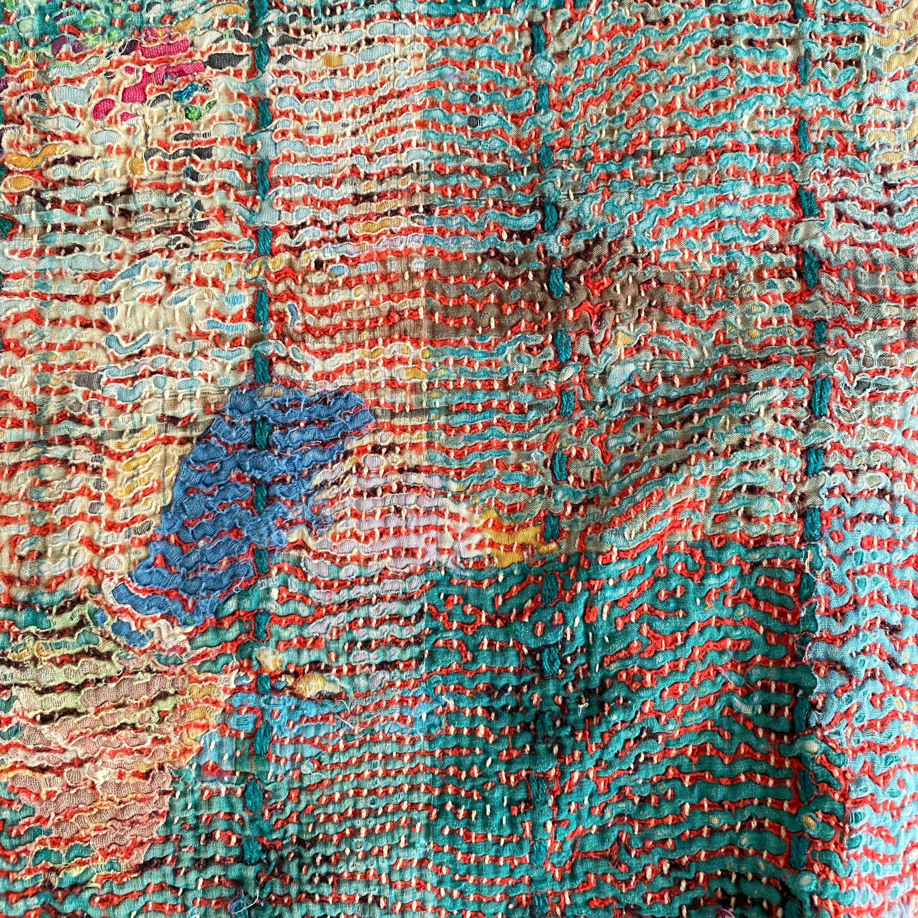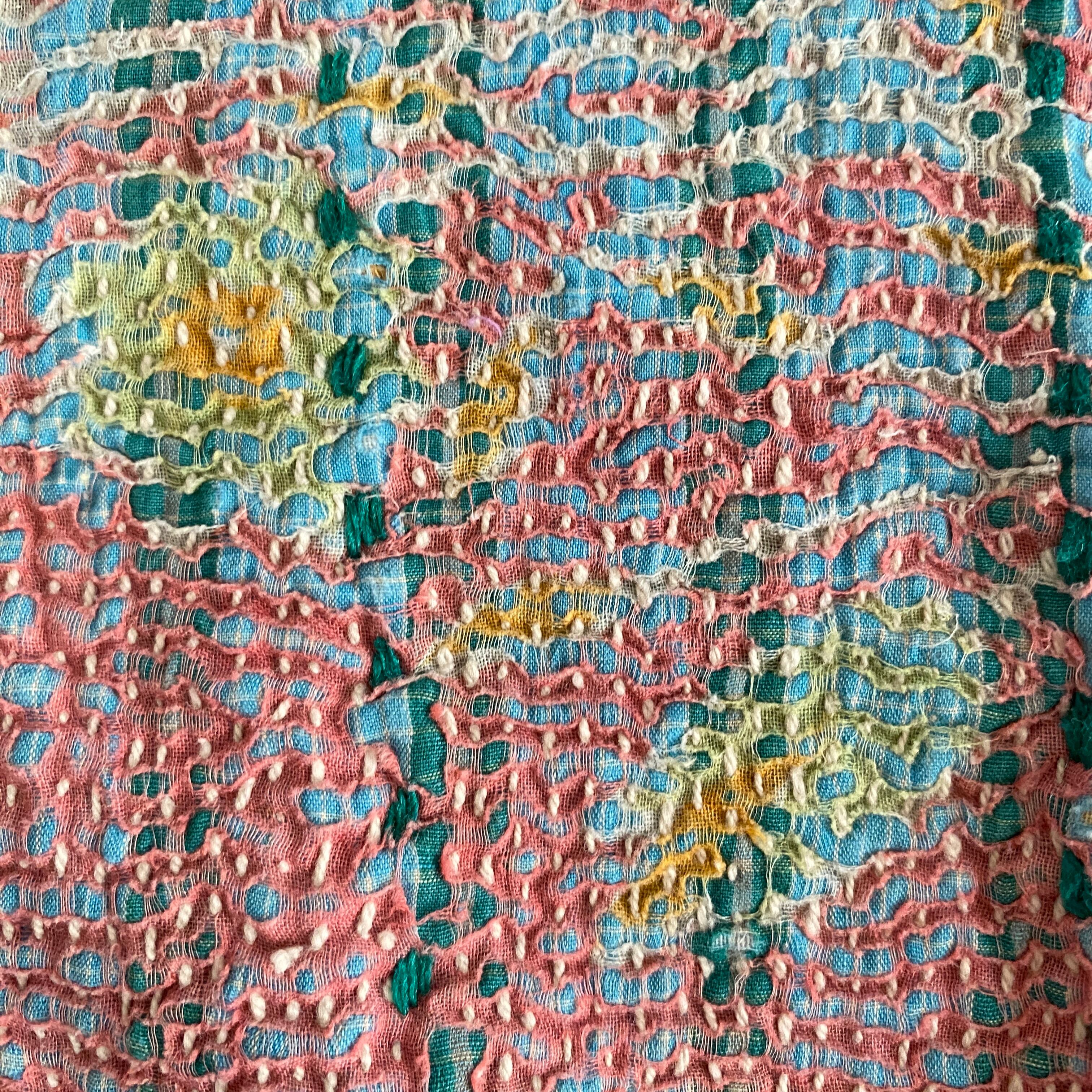 布を数枚重ねて、刺し子を施して、