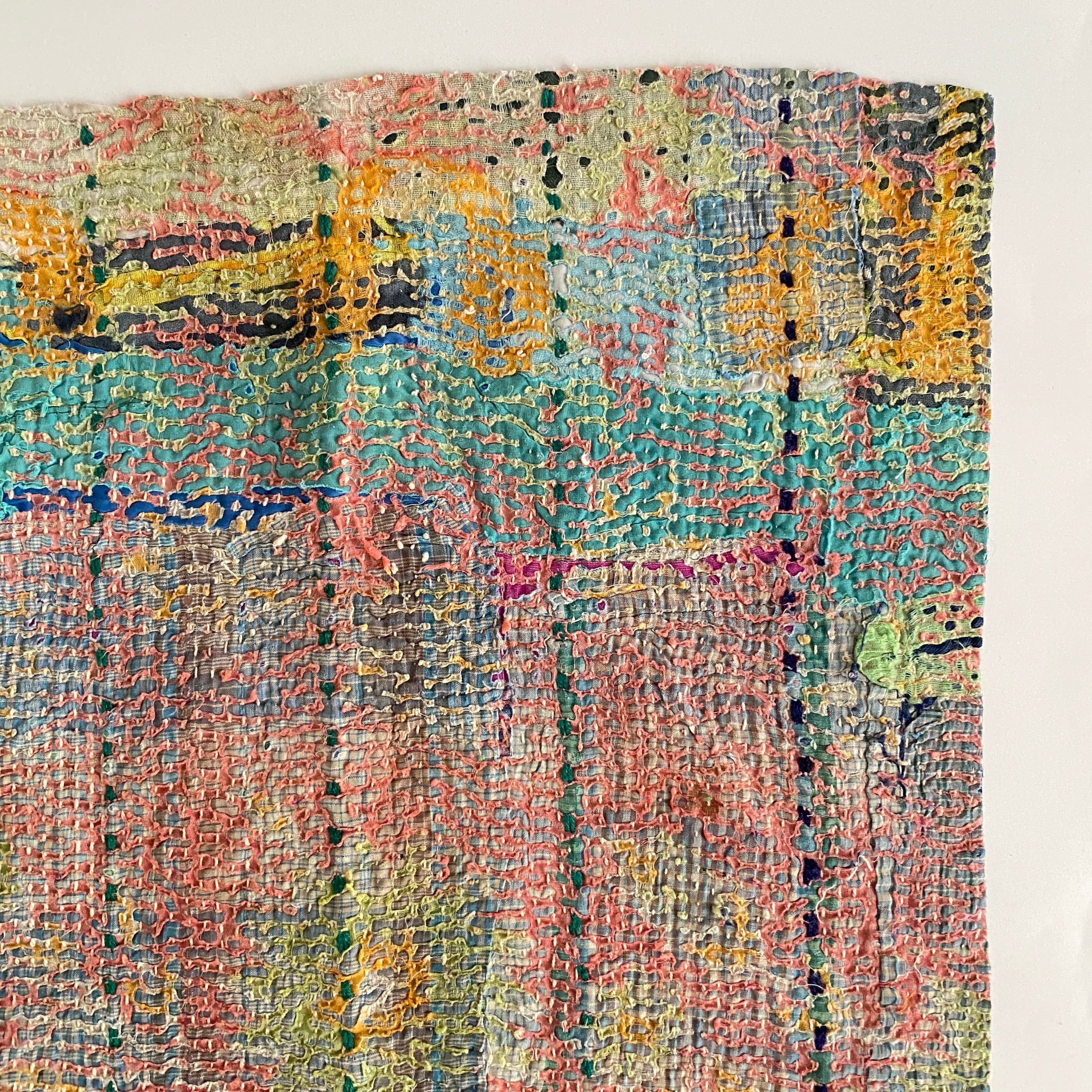布を数枚重ねて、刺し子を施して、