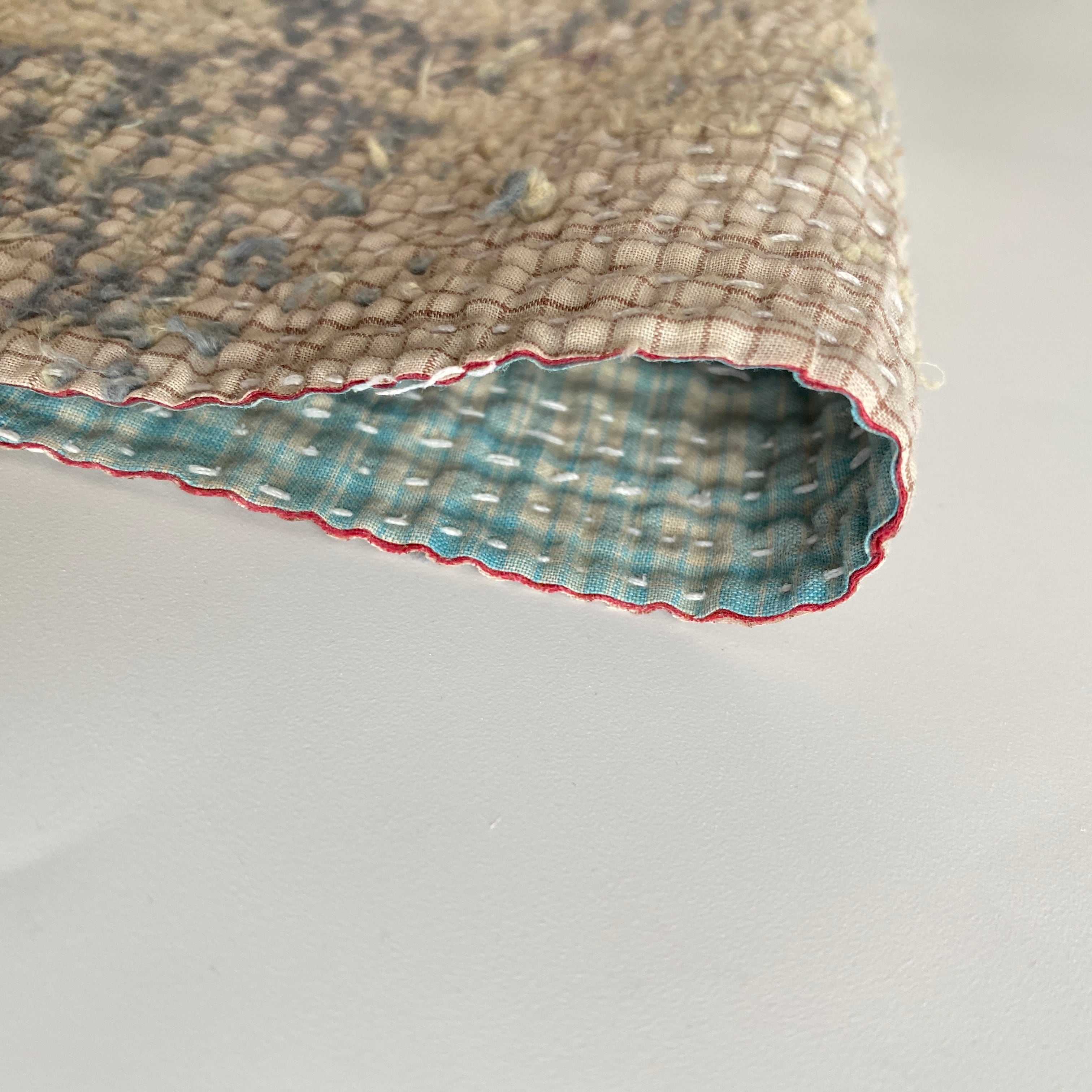 布を数枚重ねて、刺し子を施して、