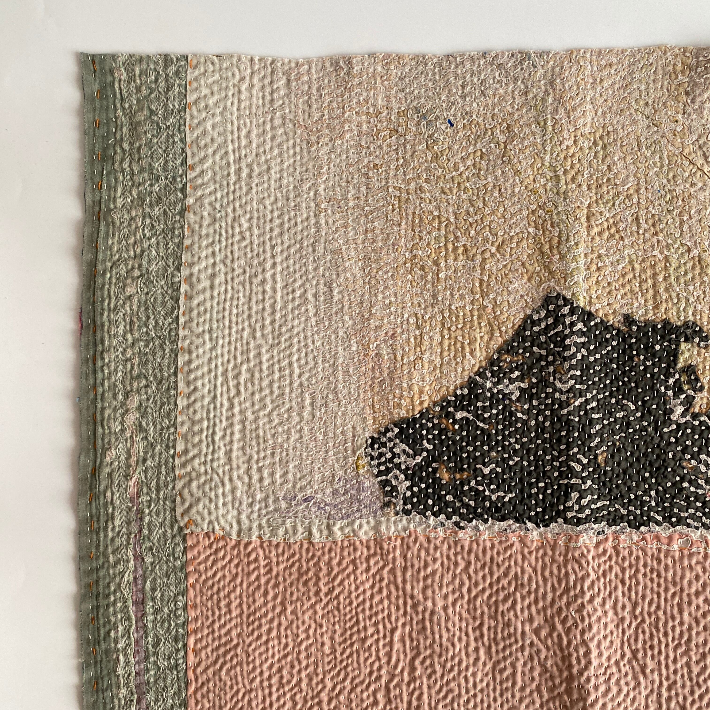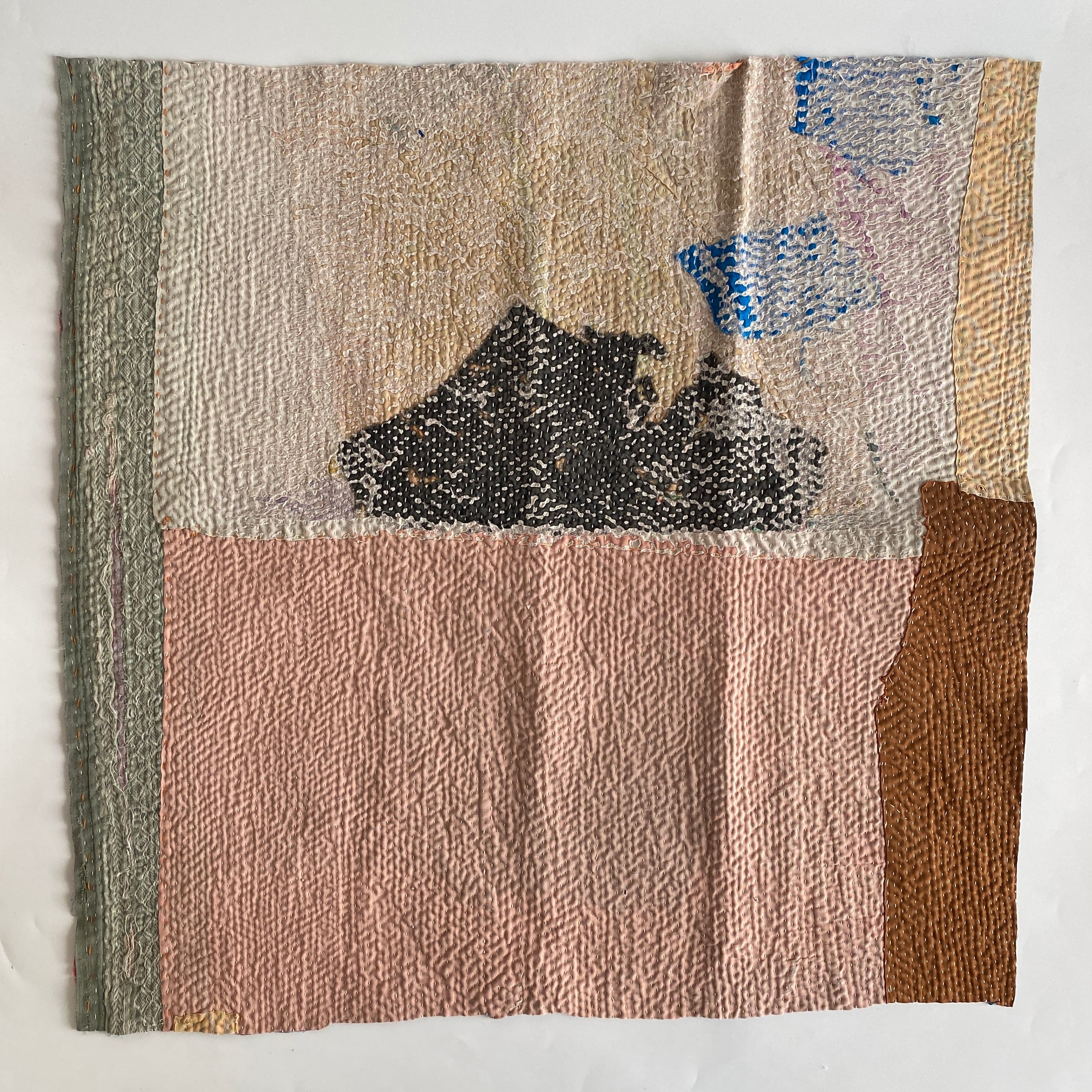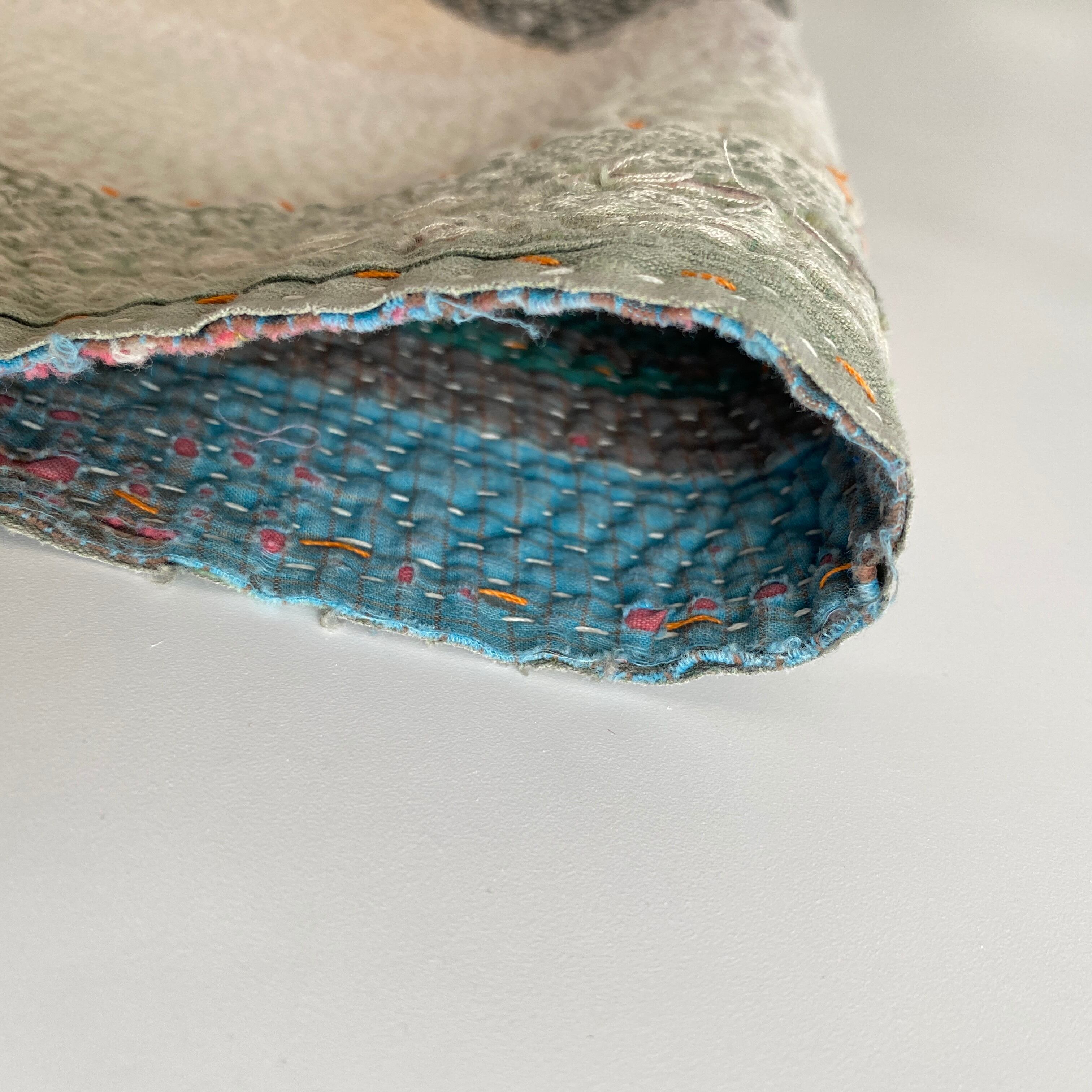 布を数枚重ねて、刺し子を施して、