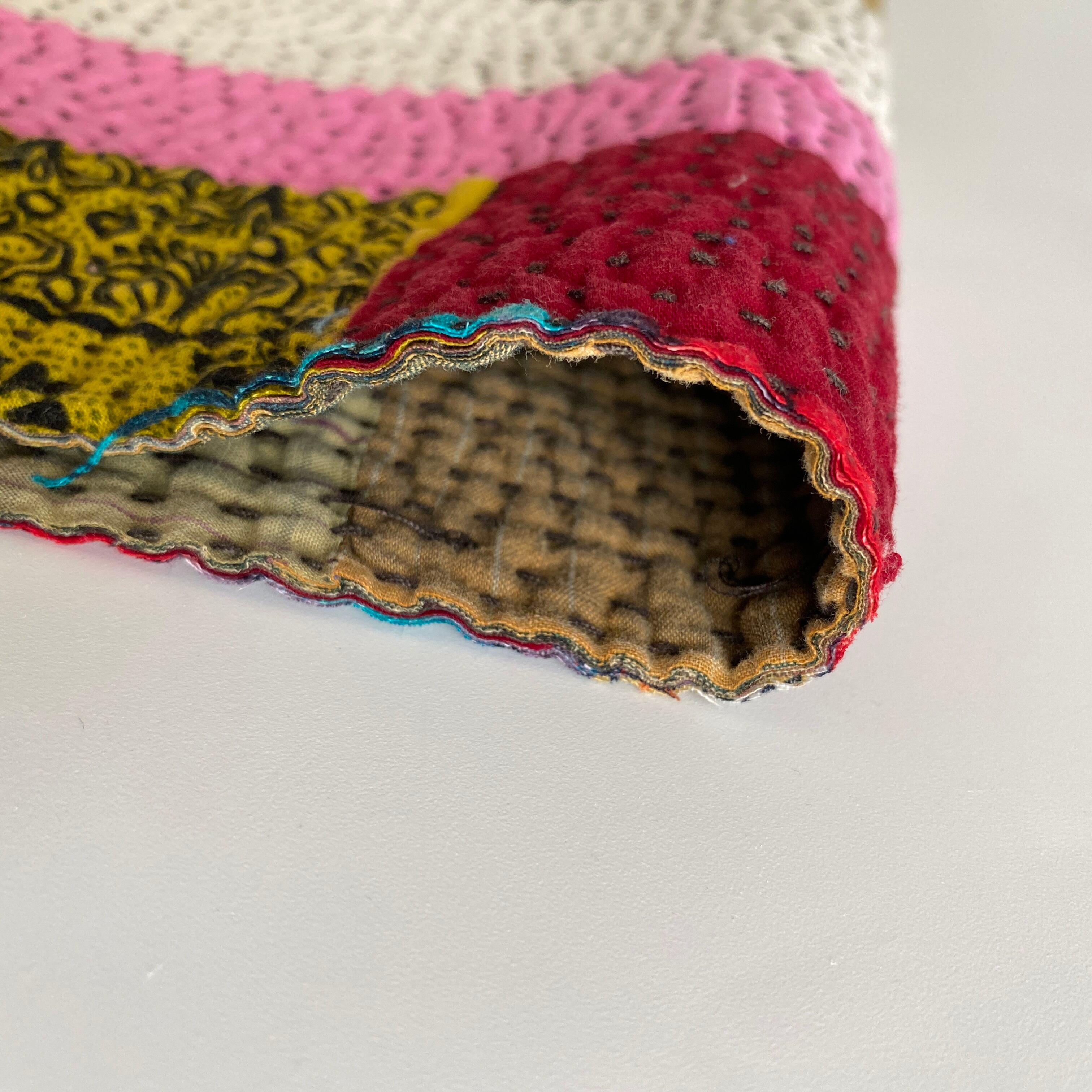 布を数枚重ねて、刺し子を施して、