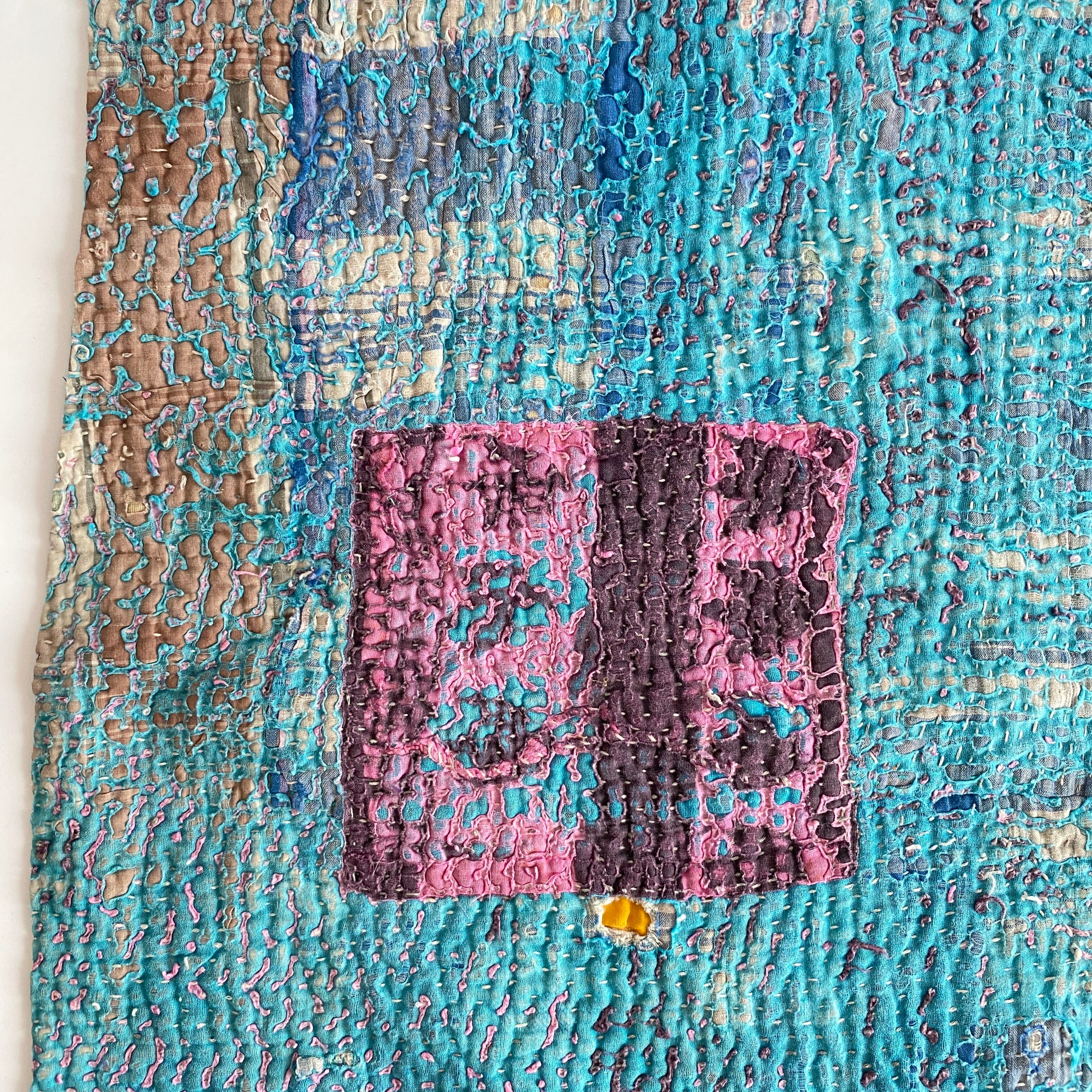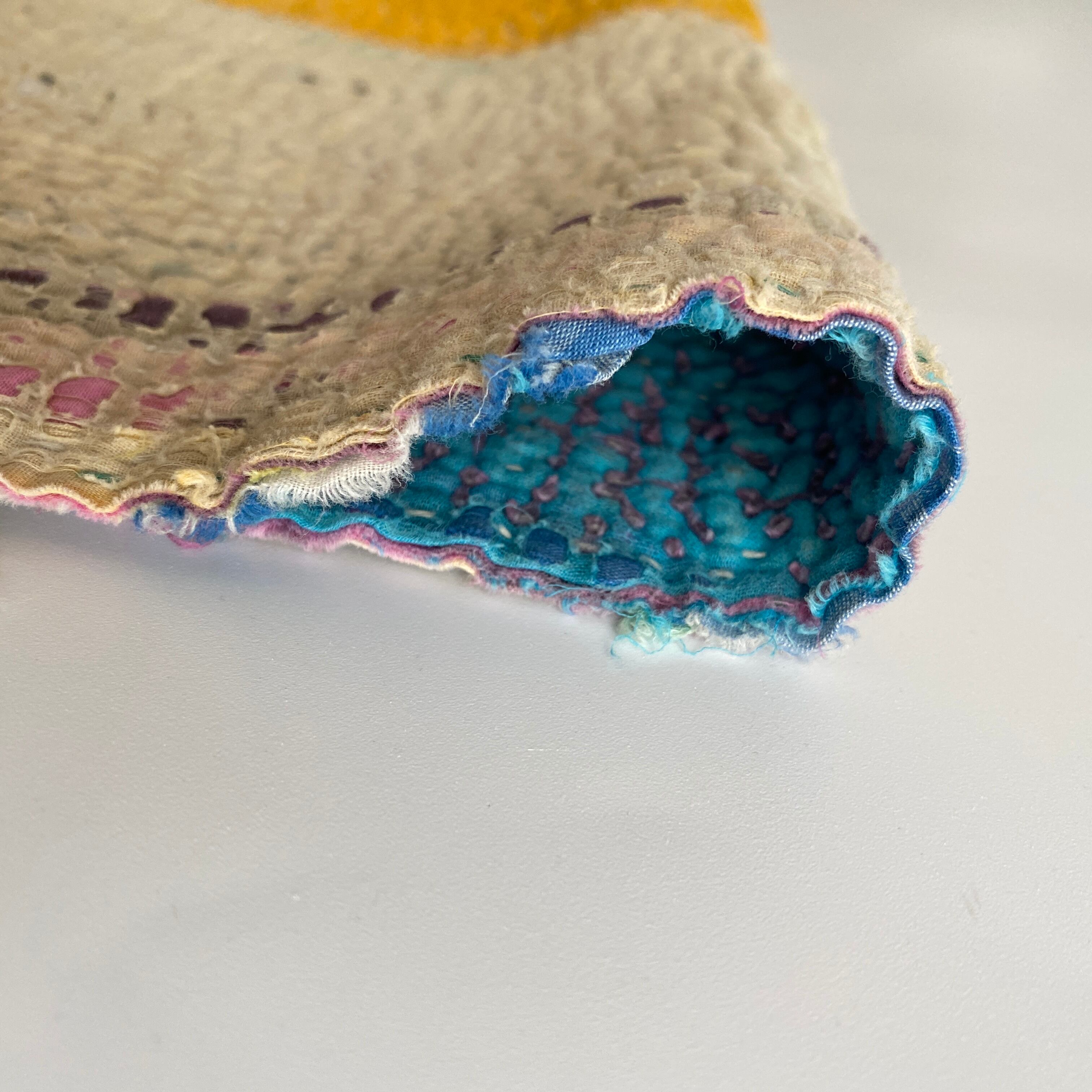 布を数枚重ねて、刺し子を施して、