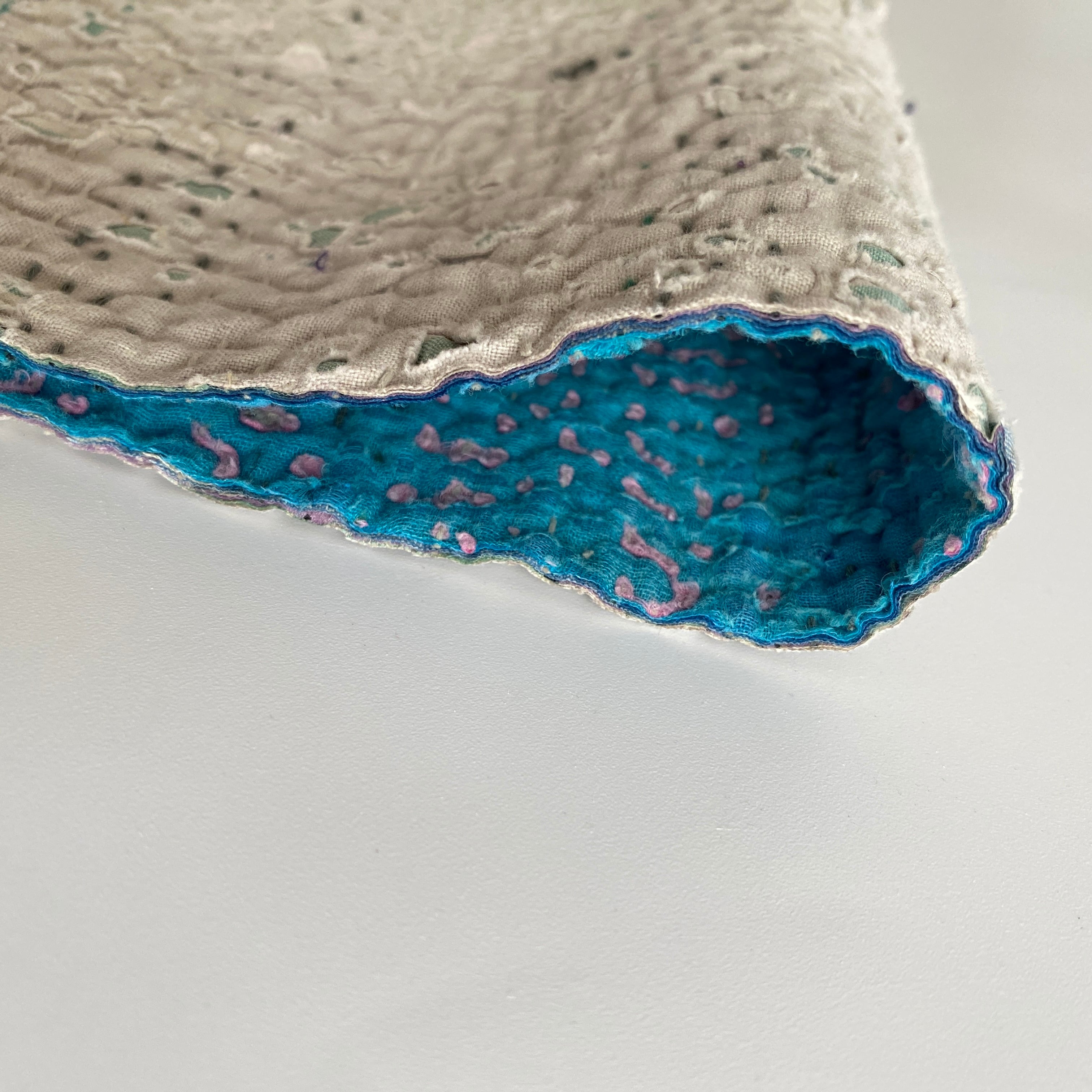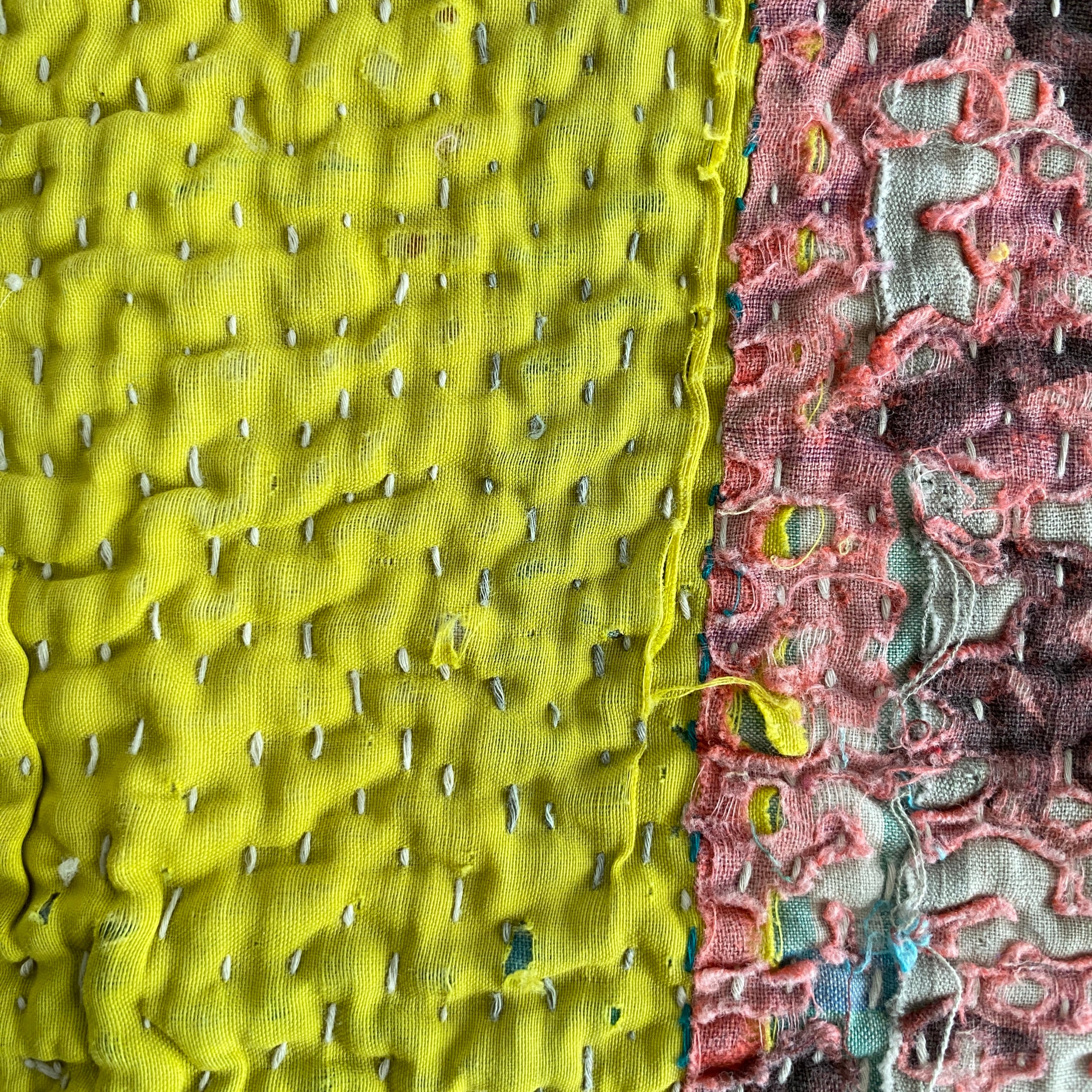 布を数枚重ねて、刺し子を施して、