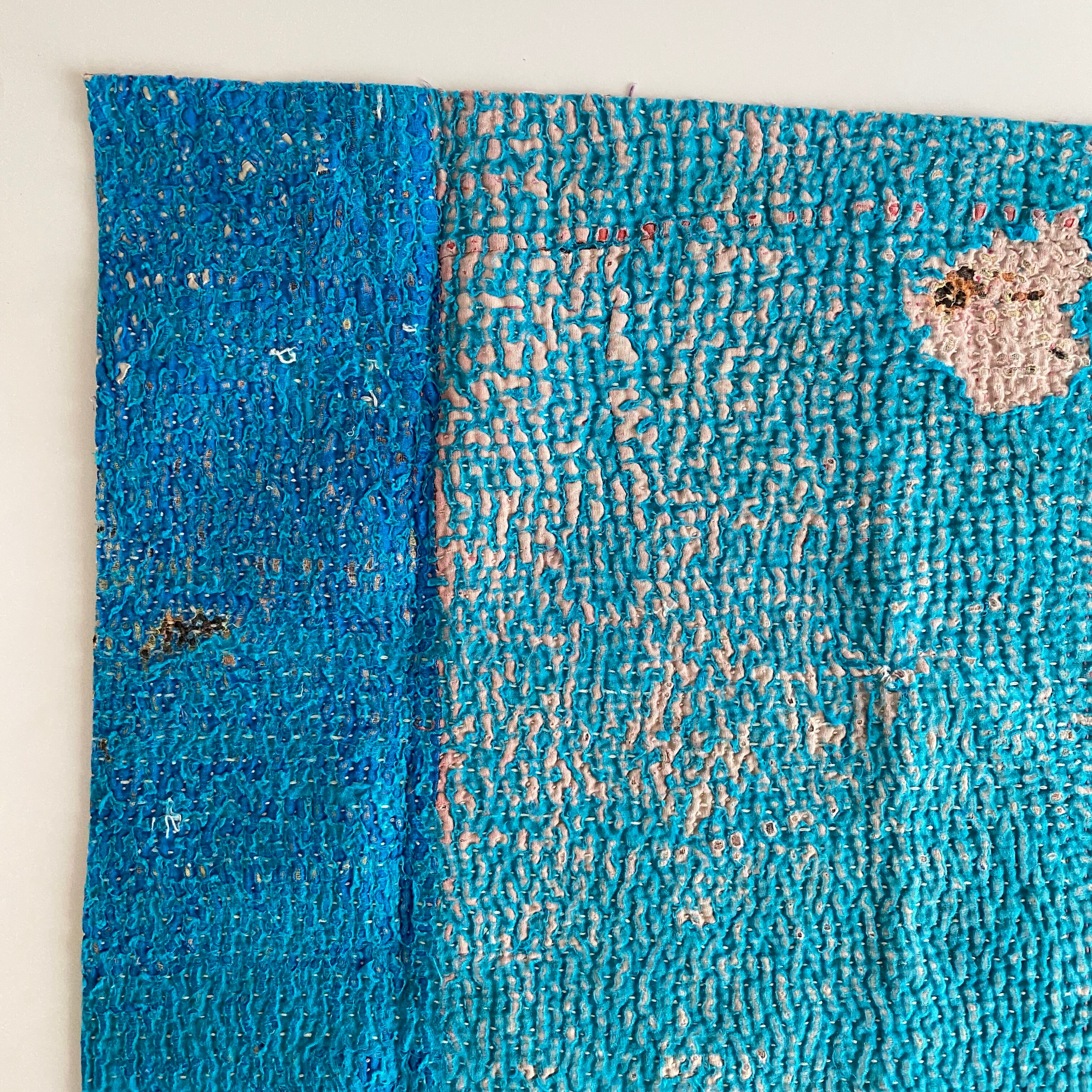 布を数枚重ねて、刺し子を施して、