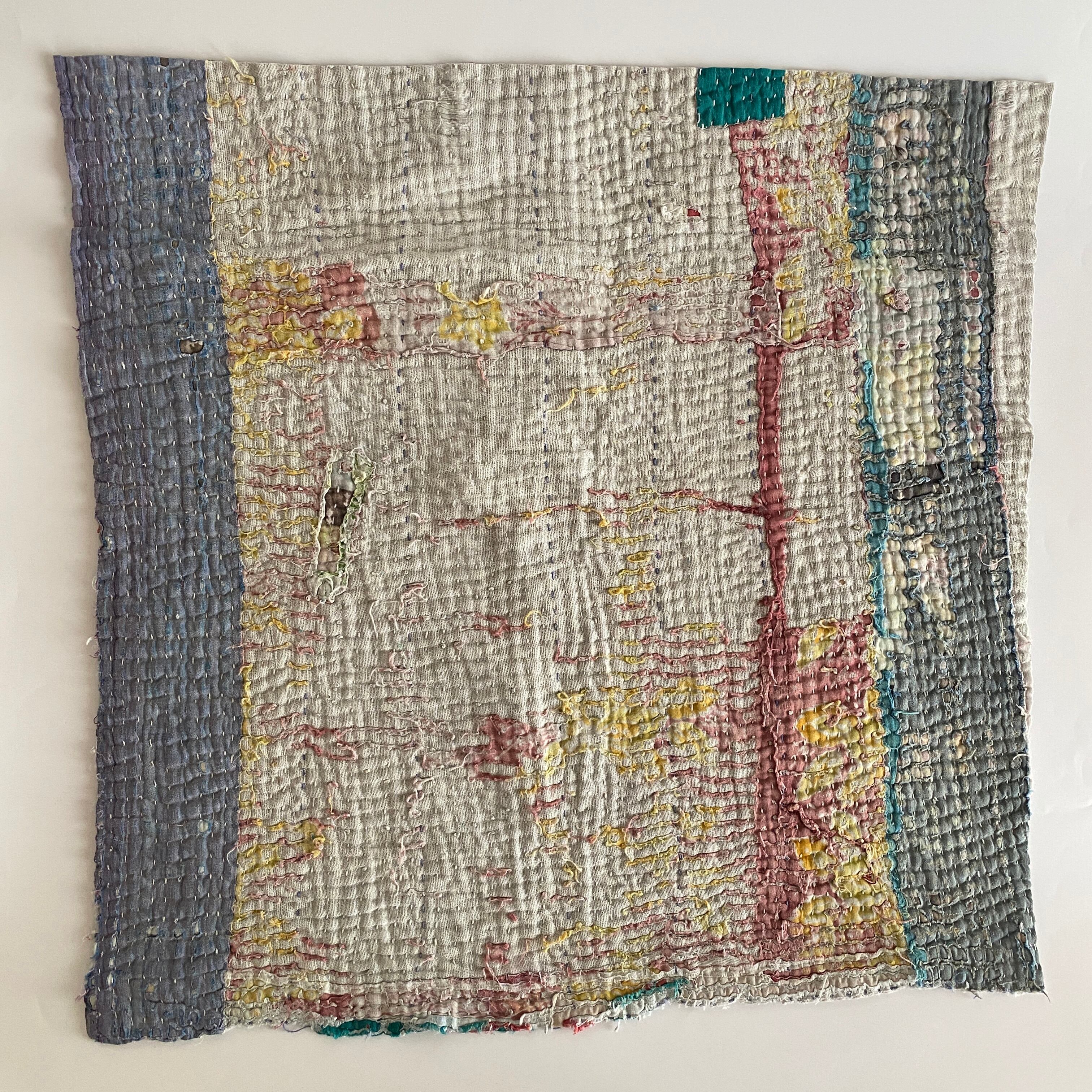 布を数枚重ねて、刺し子を施して、