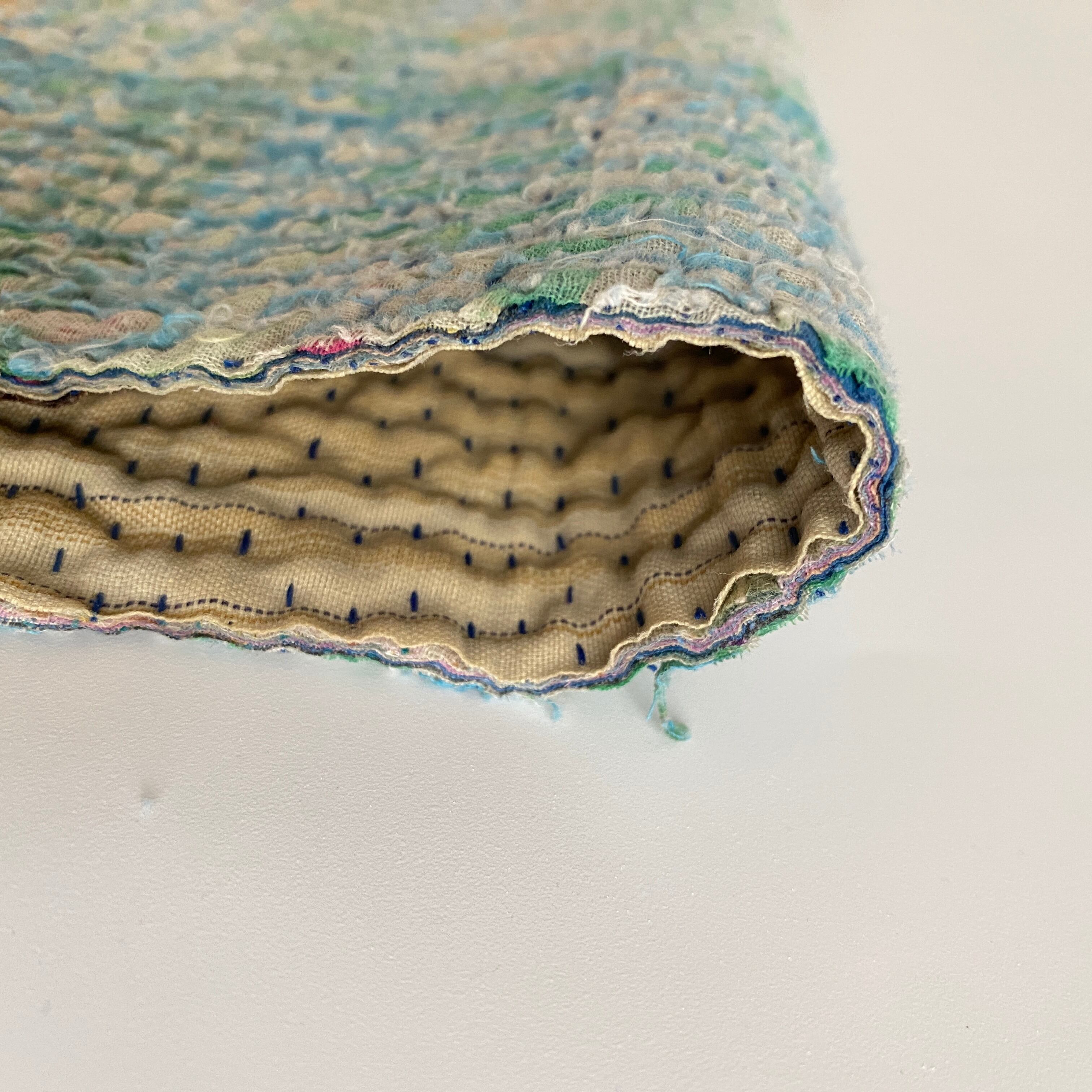 布を数枚重ねて、刺し子を施して、