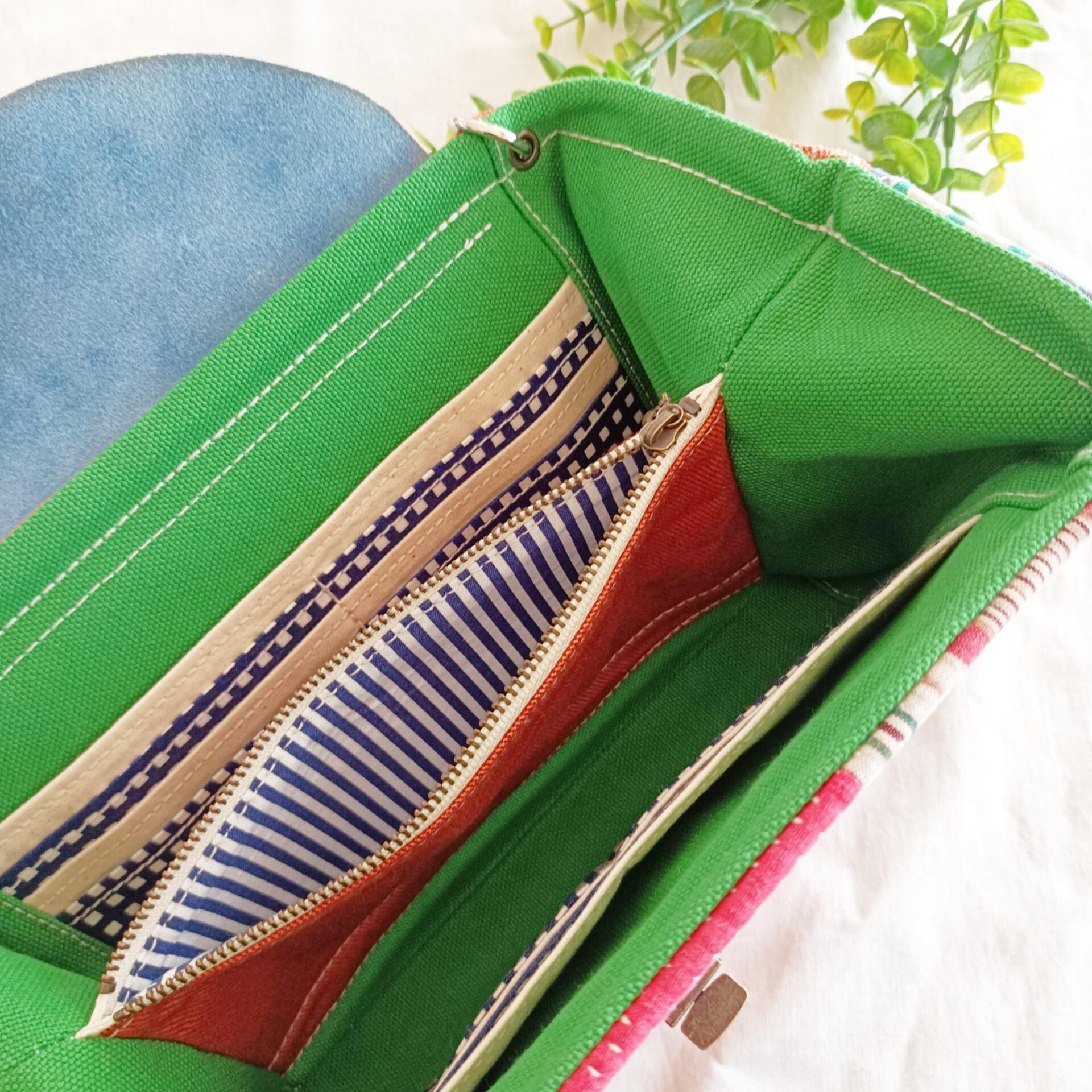 ★フリーポケットには、携帯電話や薄めのエコバッグ、キーケース、手帳、コスメなどが入ります。