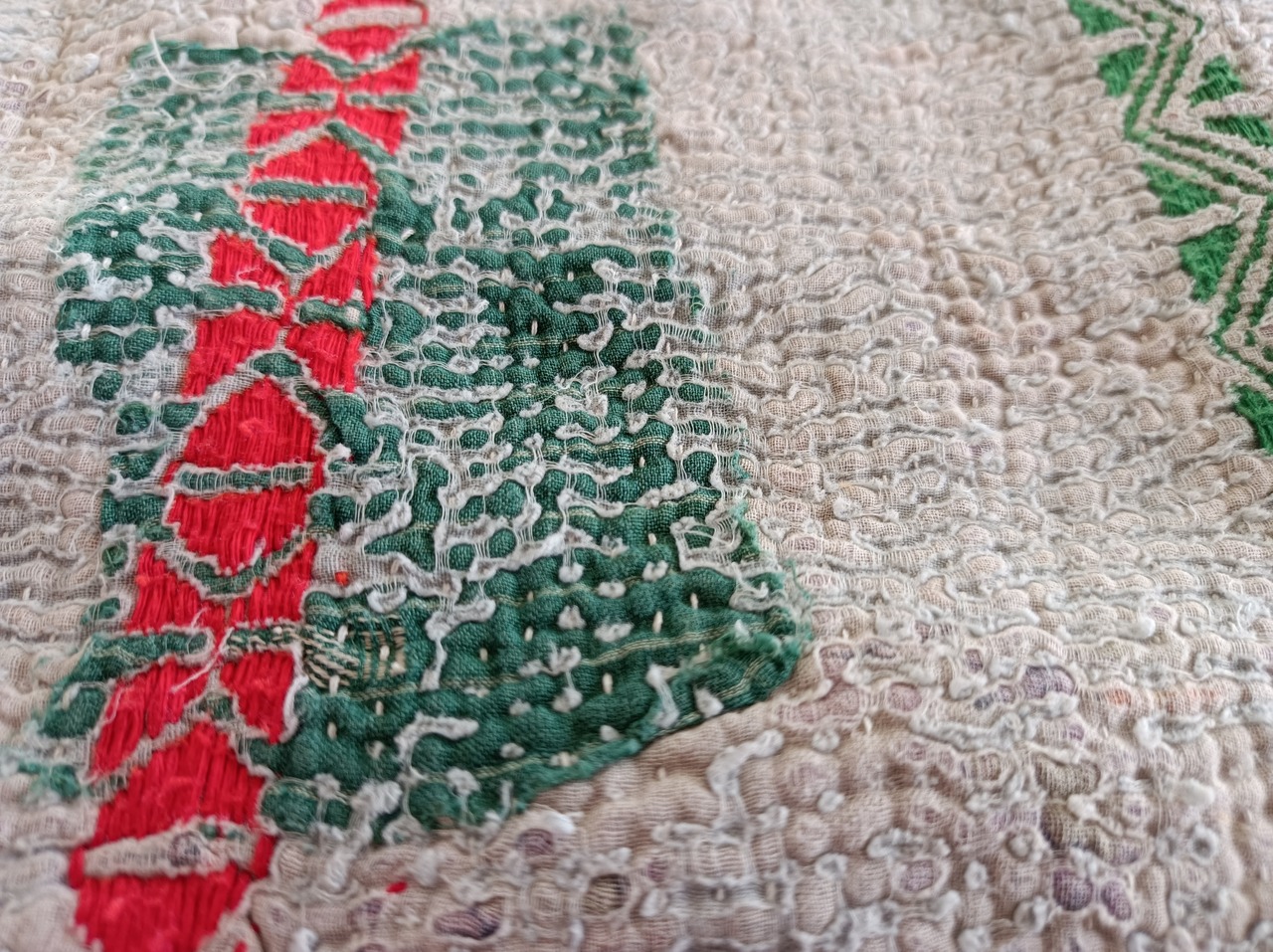 ラリーキルト・カンタキルトは、長い間、人の手で破れたら直して、継ぎ接ぎして、長く永く愛用してきた布です。
