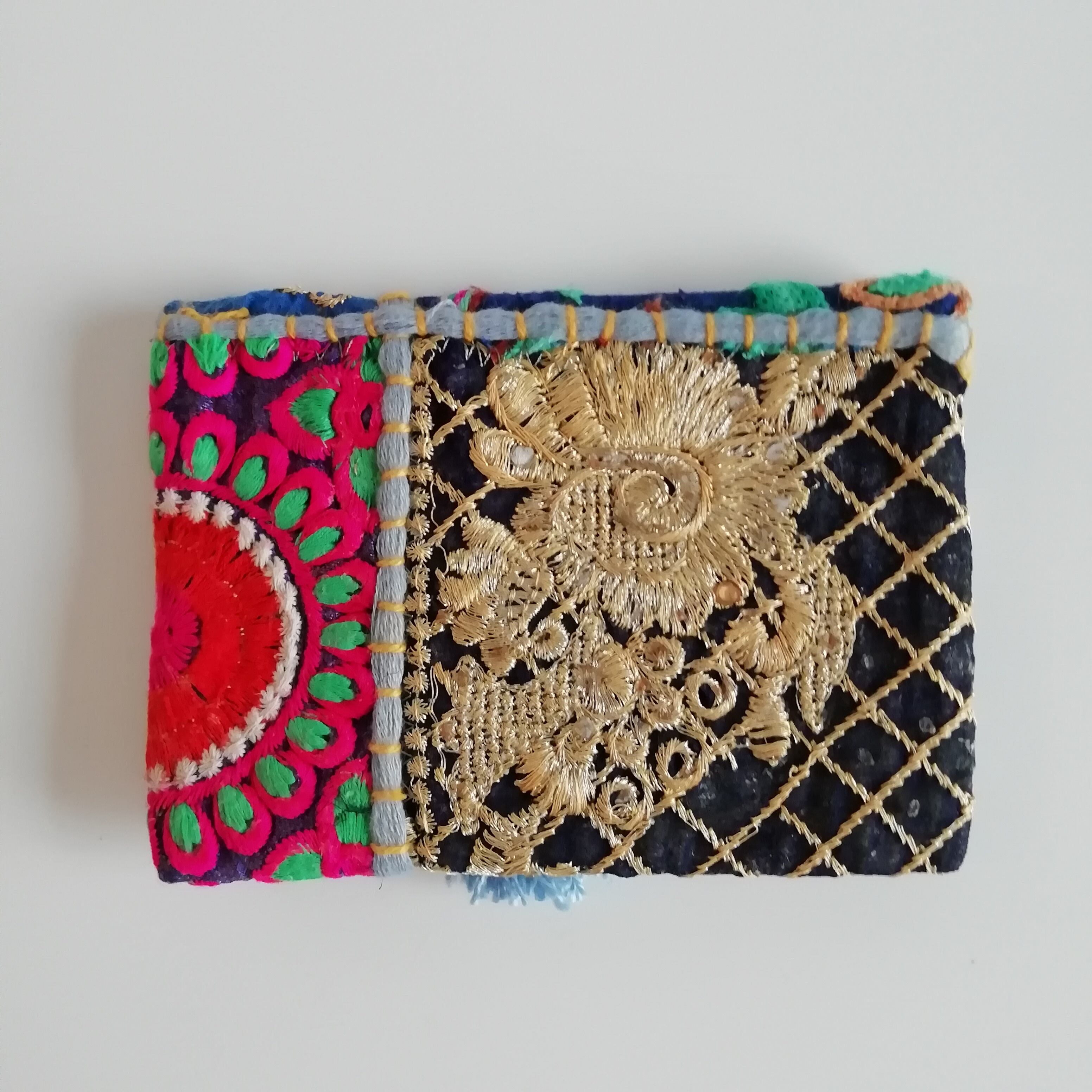 北インドに伝わるカンバディアパッチワーク。サリーやクルタなど、華やかな刺繍やビーズが施された伝統衣装の希少なヴィンテージ布をひとつひとつ手でつなぎ合わせた生地です。