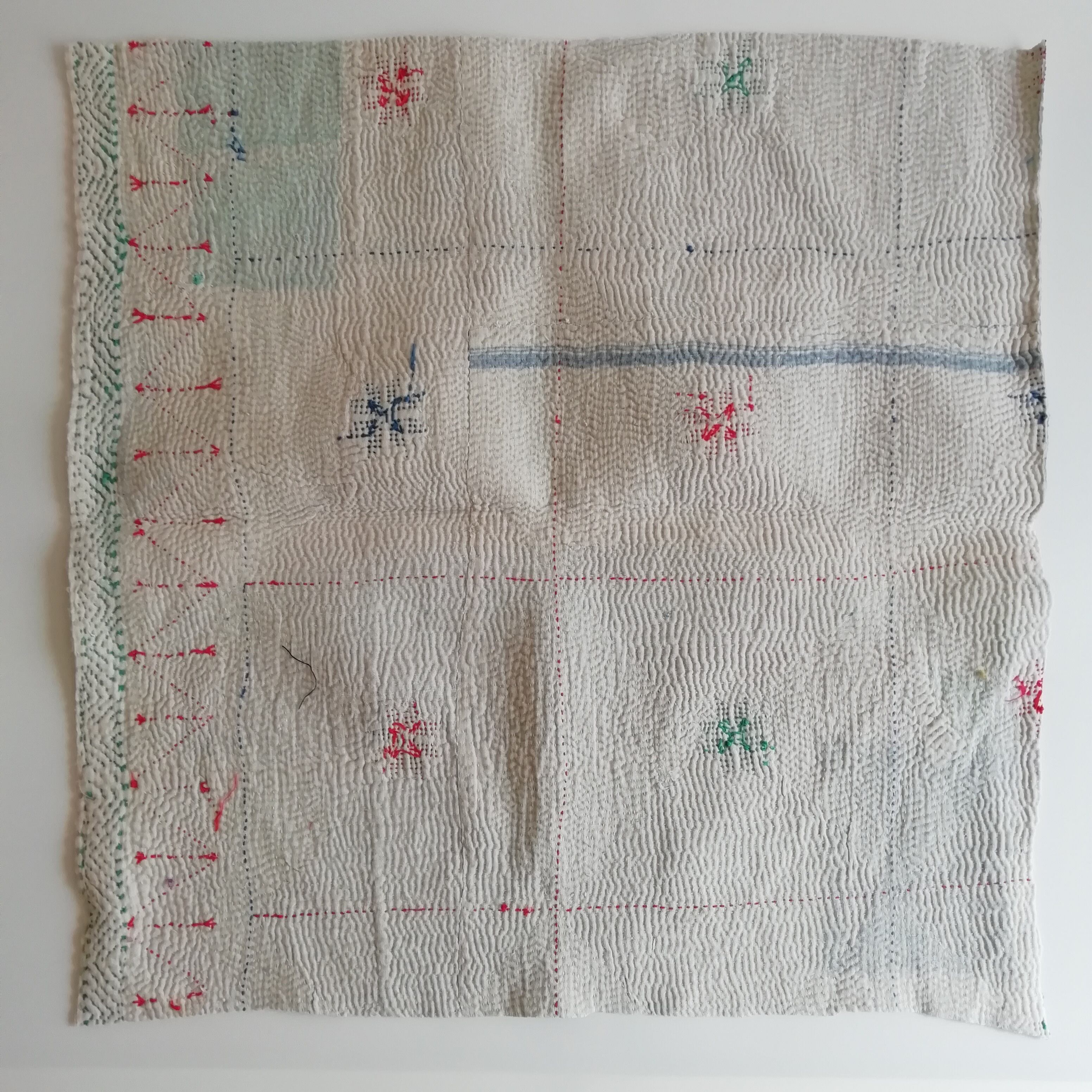 布を数枚重ねて、刺し子を施して、