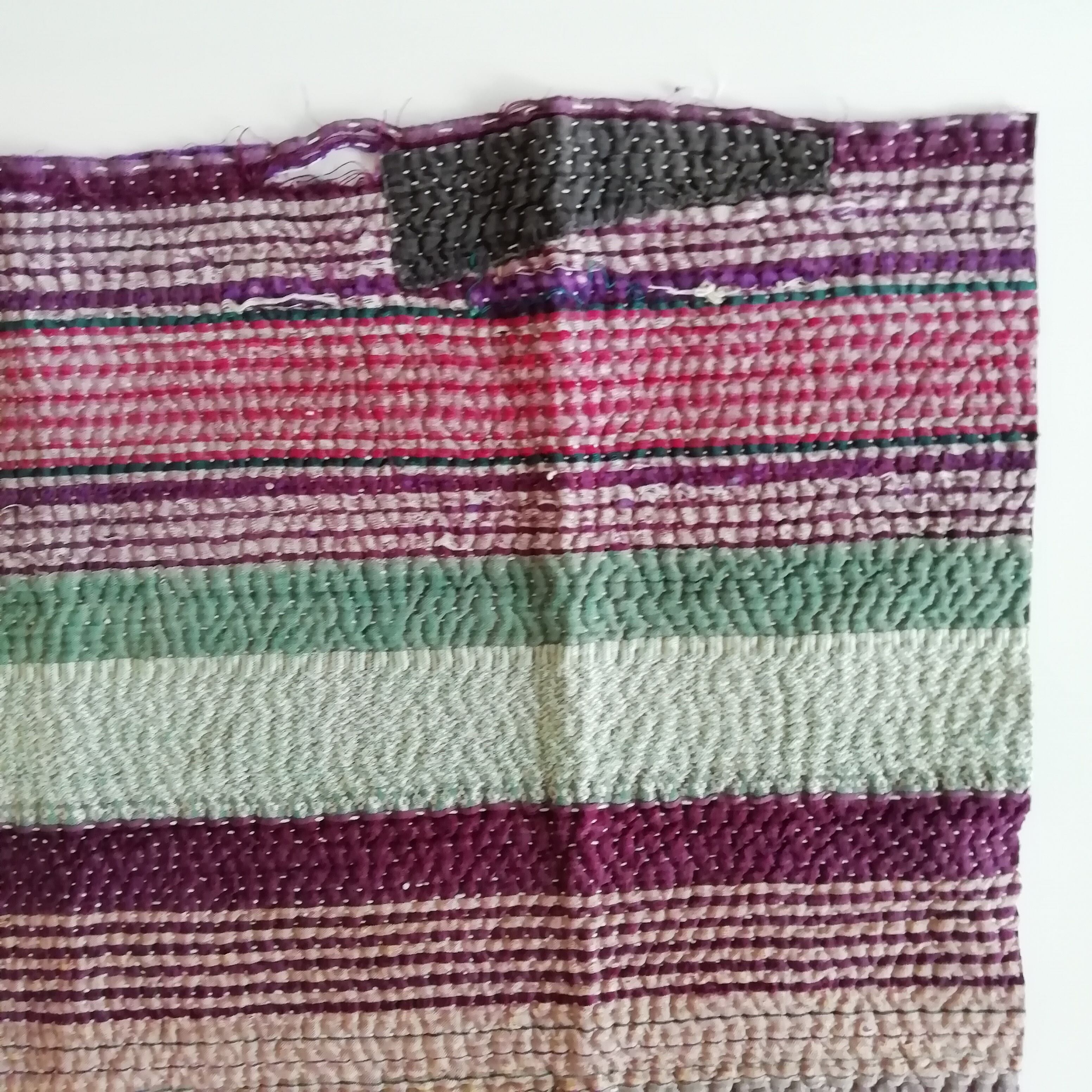 ラリーキルト・カンタキルトは、長い間、人の手で破れたら直して、継ぎ接ぎして、長く永く愛用してきた布です。
