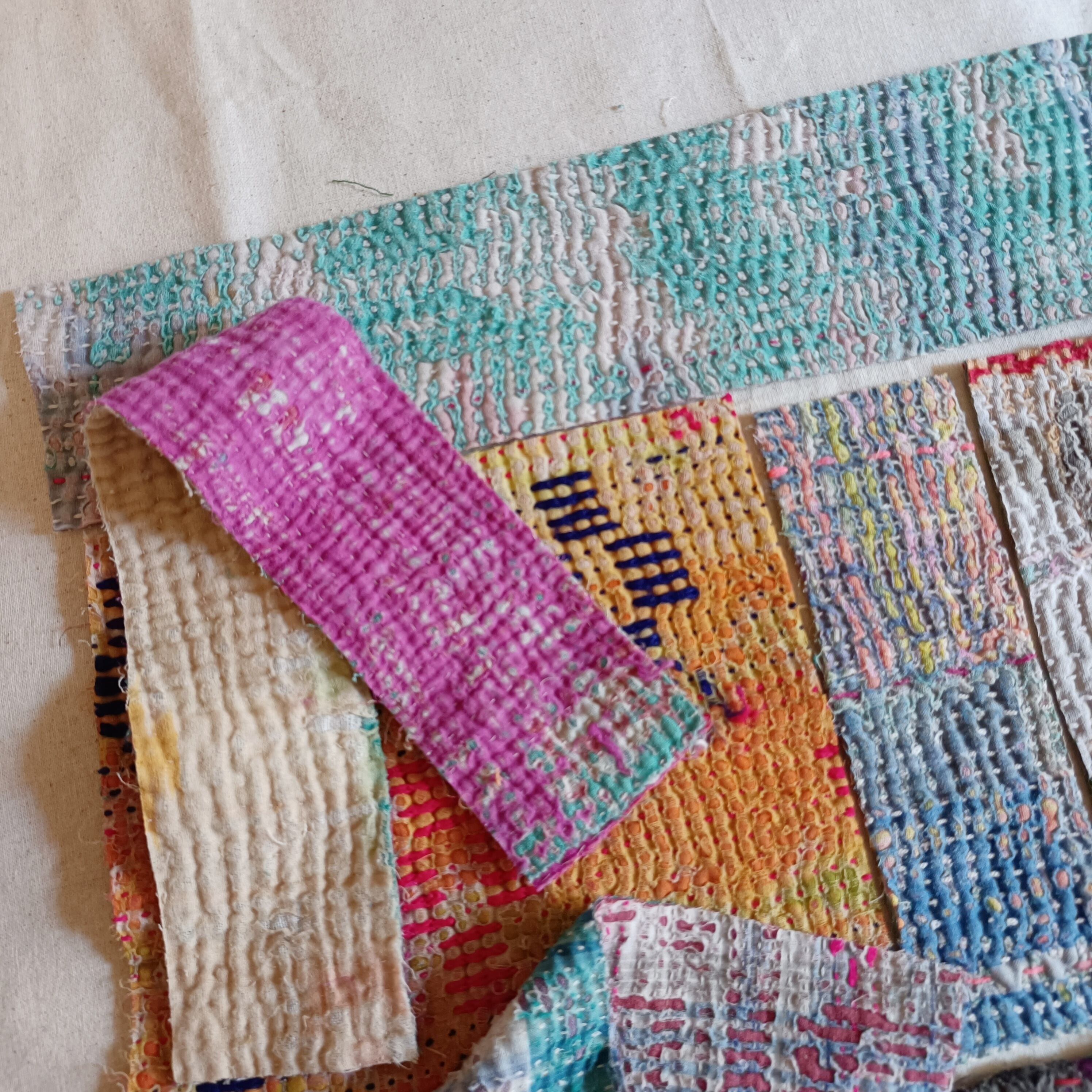 布を数枚重ねて、刺し子を施して、