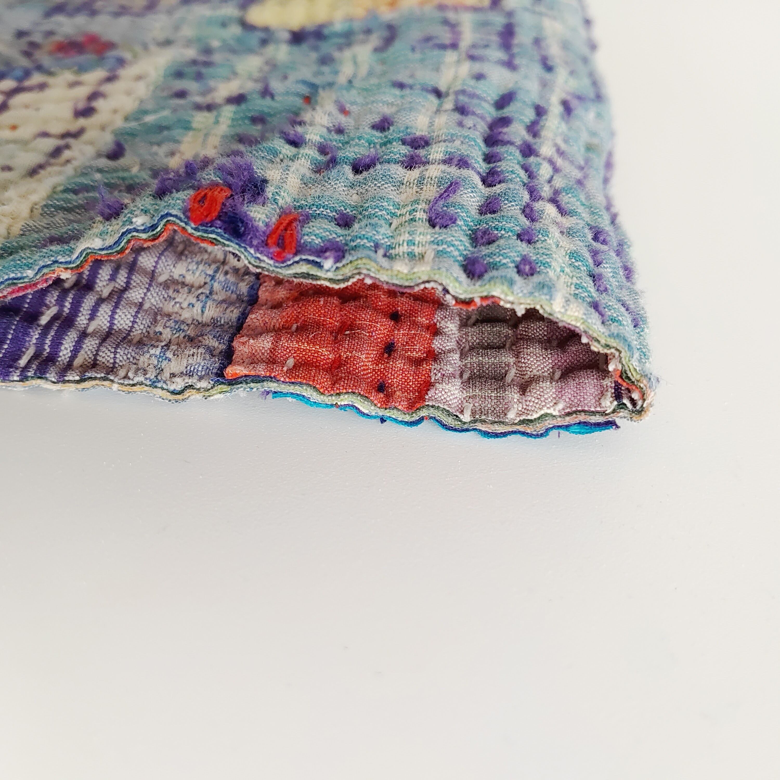 布を数枚重ねて、刺し子を施して、