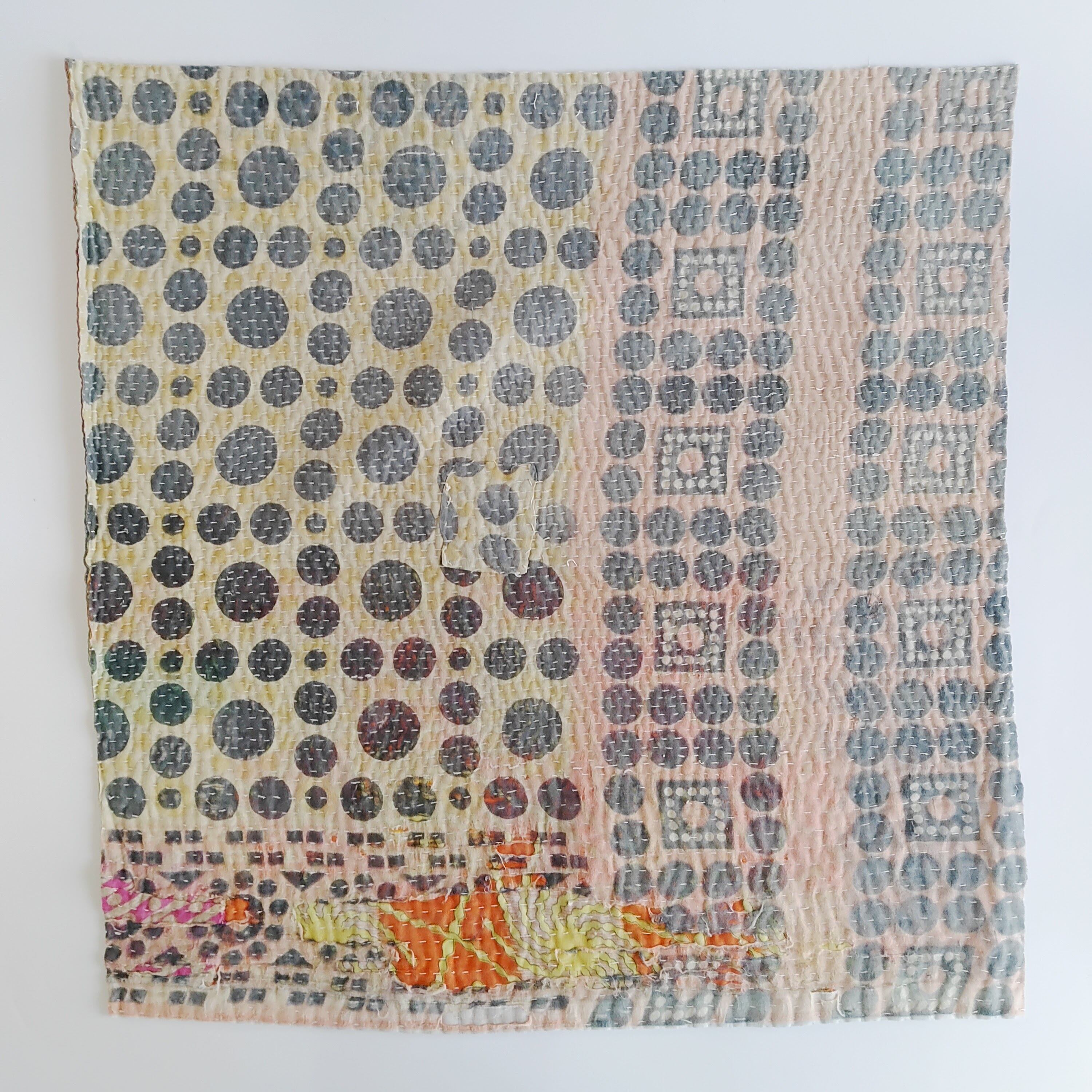 布を数枚重ねて、刺し子を施して、